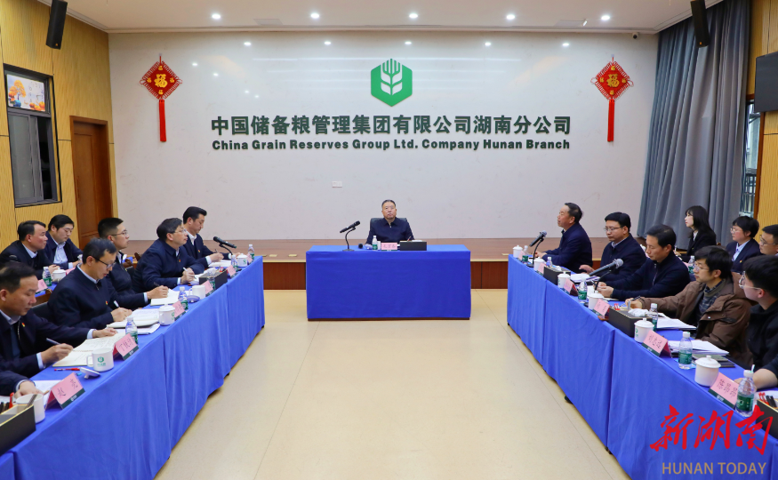 座谈会现场。 毛万春一行首先考察了中储粮智慧监管平台。座谈会上,中储粮集团湖南分公司负责同志介绍了有关工作情况;与会人员立足工作实际,围绕会议主题深入交流,提出意见建议。 毛万春对中储粮集团湖南分公司多年来为湖南经济社会发展作出的贡献给予充分肯定和感谢。他指出,要深入学习贯彻党的二十届四中全会、中央经济工作会议精神,落实省委十二届九次全会、省委十二届十次全会暨省委经济工作会议要求,切实把思想和行动统一到党中央决策部署上来,全力做好中央储备粮油经营管理、国家粮食收储政策和宏观调控任务执行,积极助力和服务好地方“三农”事业发展。
