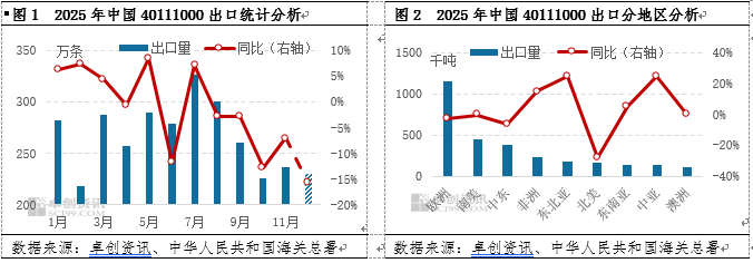 中国半钢轮胎产能过剩,行业以需定产为主。2025年在半钢轮胎三大市场中,仅有出口市场呈现小幅下滑趋势,国内替换市场和配套市场均呈增长趋势,特别是配套市场增幅可观。出口市场下滑主要是因为去年半钢轮胎出口强劲,基数较高。2025年前三季度基本延续高出口情况,但是四季度受欧盟订单暂缓影响,半钢轮胎出口放缓,拖累全年出口量小幅走低。但是国内市场表现强劲,在新能源汽车快速增长以及汽车保有量不断增长情况下,国内替换市场和配套市场需求均呈增长趋势,特别是配套市场增幅达到9%以上 1.1 需求分析 出口市场需求走低 出口市场是中国半钢轮胎三大市场中占比最大的市场,中国半钢是轮胎出口依赖度达到50.54%,出口市场对中国半钢轮胎销量有较大影响。 2025年中国半钢轮胎结束增长趋势,开始出现下滑。2025年半钢轮胎出口整体表现前高后低,主要是考虑后期关税不稳定性,企业上半年积极出口,整体同比实现乐观增长。但是欧盟委员会5月21日发布公告,正式对进口自中华人民共和国的新乘用车及轻卡充气橡胶轮胎启动反倾销调查,初裁结果公布时间在1月份,并且设定为期3个月的关税追溯期。多数欧盟订单在8月份完成。9月份起欧盟订单开始减少,四季度更是下滑至相对低点,较去年同期同比出现明显走低,甚至拉低全年出口量由增转降,预计全年累计出口3193.67千吨,同比走低1.9%。