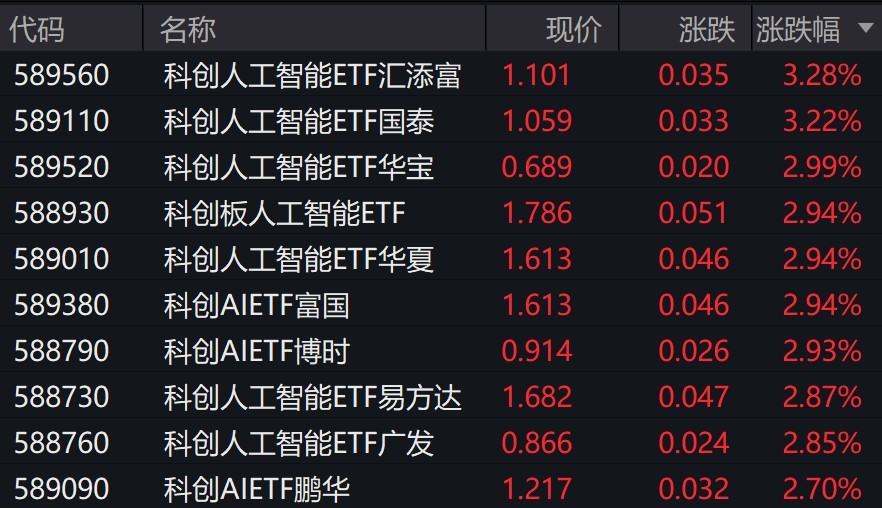 每经记者|叶峰 每经编辑|肖芮冬 AI概念股走高,云天励飞-U涨超9%,澜起科技涨超8%,芯原股份、恒玄科技涨超6%。 受盘面影响,科创人工智能相关ETF涨约3%。