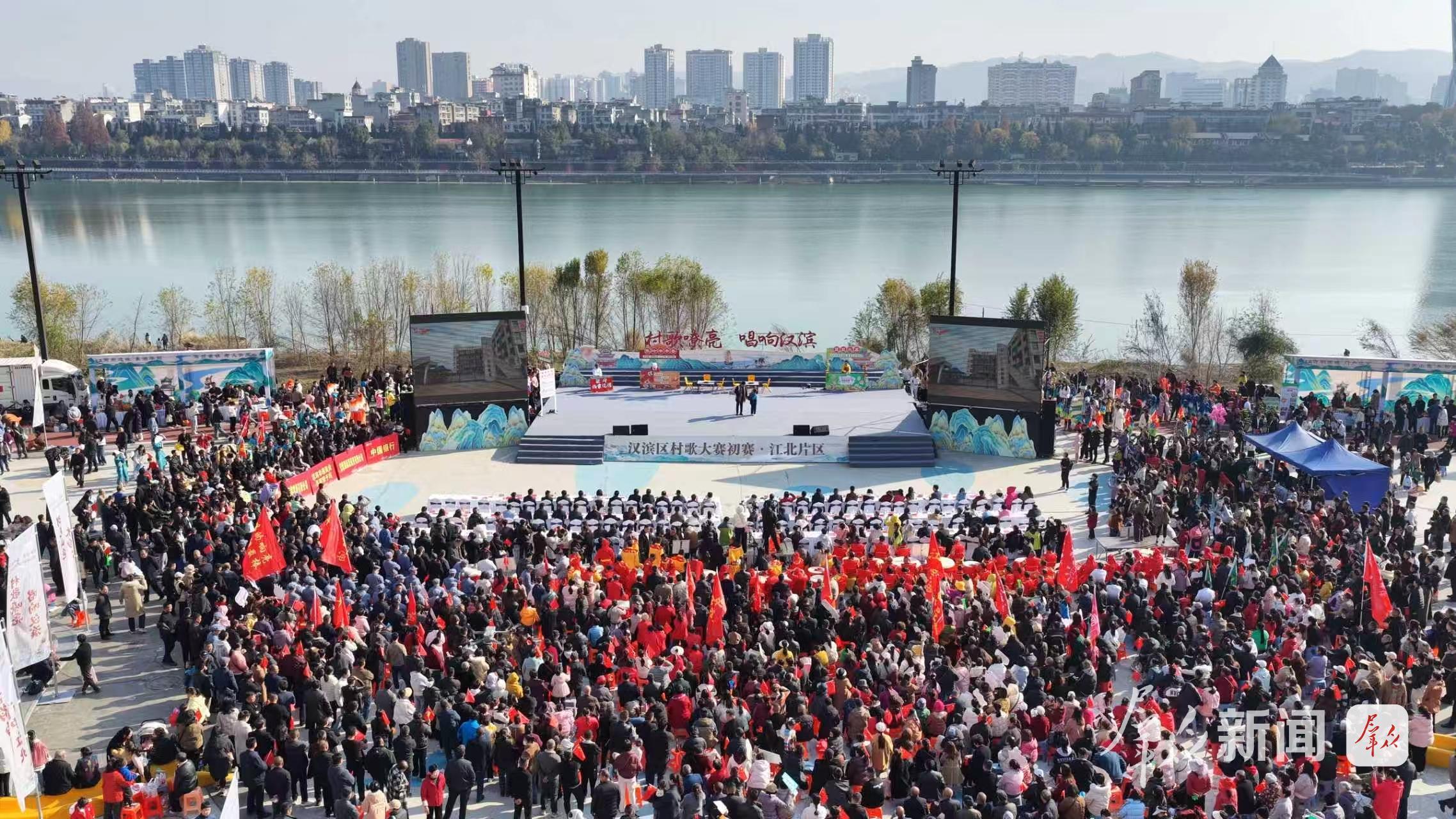 安康市汉滨区首届村歌大赛比赛现场。 彰显特色“村字号”放异彩 11月22日,汉滨区首届“村歌大赛”建民片区初赛精彩上演。选手们在村歌演绎、夸富斗彩、特色展示等环节各展所长,用嘹亮的歌声唱响乡土情怀,展现乡村活力。 “之前就是自娱自乐,‘村歌大赛’让我也圆了一把‘舞台梦’。”建民街道忠诚村村民胡婷说,在一起排练的过程中,乡亲们增进了邻里和谐,增添了生活热情,精气神越来越足。 一首村歌,就是一个村的奋斗故事。汉滨区文化和旅游广电局相关负责人介绍,区里选派文化特派员开展“菜单式”教学,为每一个村(社区)量身定制一首村歌,让乡土文化活起来、发展合力聚起来。 台上演得欢,台下人气旺。活动现场,木耳、香菇、柑橘、蜂蜜等多款“深山好货”集中亮相,驻村第一书记“组团直播”代言,搭建起产销对接、品牌推广和消费助农的平台。 “希望能借助‘村歌大赛’的流量,让更多农特产品走出大山。”建民街道黄石滩村驻村第一书记杨晓娟说。
