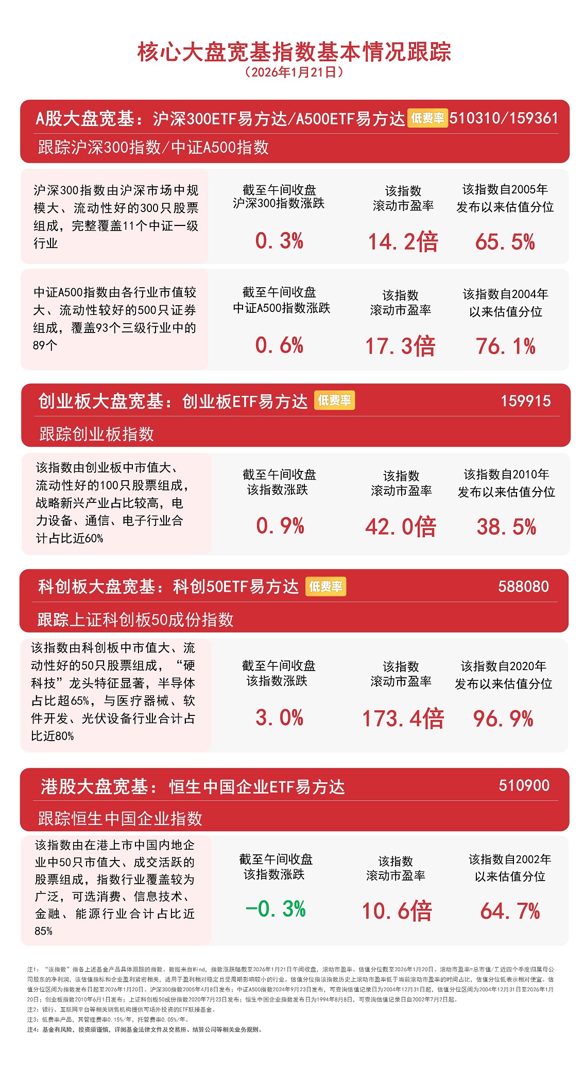 1月21日早盘,A股三大指数集体上行,创业板指一度涨超1%,全市场半日成交额1.65万亿元,板块题材上,GPU、锂矿、先进封装、黄金珠宝板块涨幅居前,白酒、煤炭板块跌幅居前;港股震荡分化,半导体、有色金属板块领涨,消费股回调。截至午间收盘,中证A500指数上涨0.6%,沪深300指数上涨0.3%,创业板指数上涨0.9%,上证科创板50成份指数上涨3.0%,恒生中国企业指数下跌0.3%。
