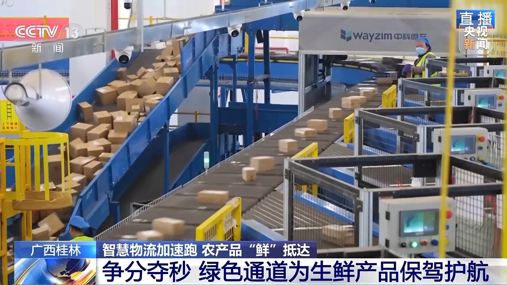 丰富的市场离不开发达的物流。在广西桂林,金黄的砂糖橘、香甜的柿饼等特色农副产品,正借助智慧物流的东风,从田间地头快速奔向全国百姓的餐桌。在当地的一家快递转运中心,依托智能化物流体系,日均处理能力可达110万票。 跟随镜头,可以看到这里密集的分拣条线,以及源源不断的包裹运输。广西是水果生产的大省区,目前,水果产量已经连续8年位居全国第一。 从枝头到网点 科技助力打通“最初一公里” 新鲜的砂糖橘被采摘下来后,无人机就化身“空中邮差”,轻松跨越地理阻隔,将它们快速送出果园。据果农介绍,过去要半个多小时的路程,现在无人机只要十多分钟,既省时又高效。