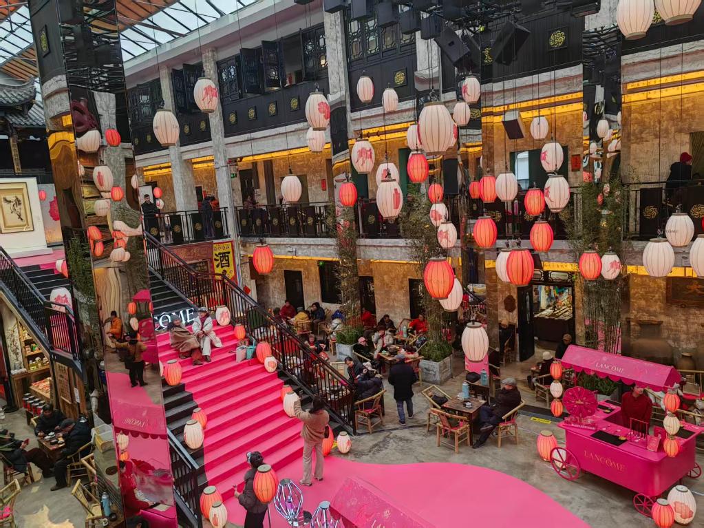 游客在位于成都市青羊区的大旗茶馆拍照打卡。新华社记者 董小红 摄 “茶馆是一个载体,里面装的是成都文化。”大旗茶馆主理人文艺介绍,茶馆每天有固定的茶艺、川剧变脸等表演,定期会举办非遗手工课,还设置了专门的扎染体验区域。 为了吸引更多年轻人,茶馆还开设了甜水铺。“不同消费场景可以满足多个年龄段游客的需求,让大家沉浸式感受老成都文化的沁润。”文艺说。 如今,大旗茶馆不仅成为市民游客的网红打卡地,越来越多文旅展演活动也钟情于此。这座老厂房的蝶变,是成都激发消费活力的一个剪影。近年来,以“场景”为核心的文旅融合实践正在成都街头蓬勃兴起。 拥有60余年历史的成都人民饭店锅炉房被改造成戏剧综合空间,形成集戏剧演出、艺术创作、生活消费于一体的复合场景;成都兴隆湖正推动公园从单一赏景到复合业态转型,打造皮划艇体验、星空露营、宠物友好等“公园+”新消费场景……一个个精彩纷呈的场景创新案例,为成都文旅融合写下生动注脚。