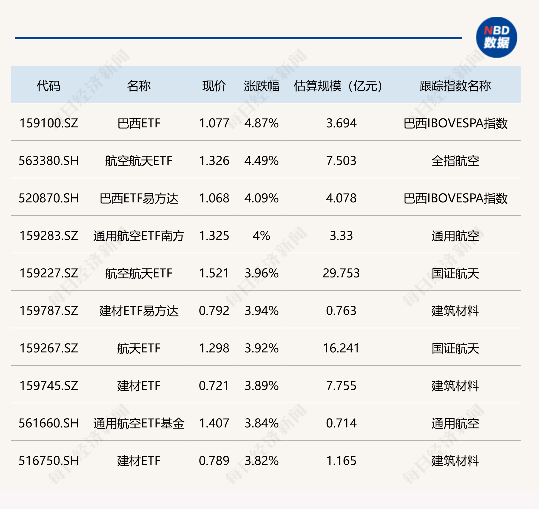 每经记者|叶峰 每经编辑|肖芮冬 市场午后震荡回升,三大指数集体翻红,创业板指走势较强。从板块来看,商业航天概念爆发,机器人概念反复走强,油气概念延续强势;下跌方面,保险、半导体、医药等板块跌幅居前。 ETF涨跌幅方面,巴西ETF、航空航天ETF涨超4%。