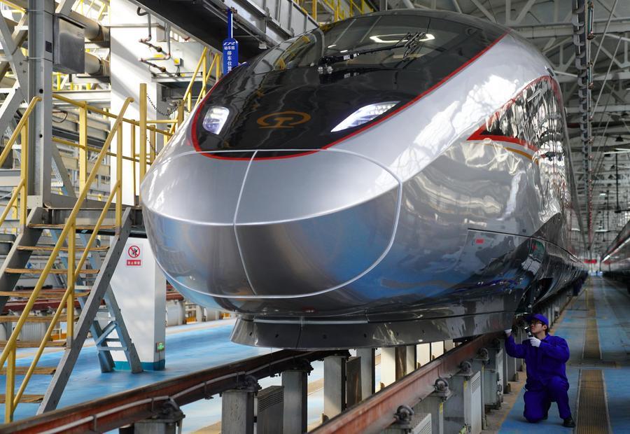 by Yi Ling and Wu Jiangmin SHENYANG, Jan. 22 (Xinhua) -- As a bone-chilling cold wave sweeps across northern China, bringing blizzards and temperatures plunging to minus 30 degrees Celsius in some northeastern regions this week, the country's vast high-speed rail network continues to slice through the frozen landscapes. How does the world's largest high-speed railway system, a backbone of modern Chinese mobility, ensure such reliability and comfort amid extreme winter? The secrets lie in an array of smart, cold-defying technologies, ranging from giving trains "down jackets" to equipping them with "heating patches." "Take the Fuxing bullet train as an example. Though its body is exposed, it essentially wears a thick 'down jacket,'" said Wang Xiaoyu, an engineer at China Railway Shenyang Group Co., Ltd, referring to the high-performance insulation materials encasing the train's body. With extremely low thermal conductivity, this specialized barrier effectively blocks frigid outside air. Complementing this is exquisite sealing craftsmanship. Every door, window and joint of the train carriage undergoes special treatment to achieve a tight fit, drastically reducing heat loss, Wang explained. But the protection extends far beyond the outer shell. Beneath and atop the train, a network of pipelines for water, air and drainage is wrapped in insulating layers -- akin to being dressed in "thermal innerwear" -- that are thick and effective at locking in warmth. For more vulnerable spots like drain outlets, electric heating tapes are installed. "These act like 'heating patches,' automatically switching on when sensors detect temperatures dropping too low," Wang added. Maintaining a steady, pleasant cabin temperature while external conditions fluctuate rapidly is another critical task. Temperature sensors at both ends of each carriage constantly monitor the indoor climate. Data feeds into an intelligent climate-control system, which automatically adjusts the air conditioning to keep the cabin temperature within a comfortable range, the engineer said. Additional warmth is delivered through heating vents located along the sidewalls beneath the windows, ensuring passengers feel cozy from head to toe.