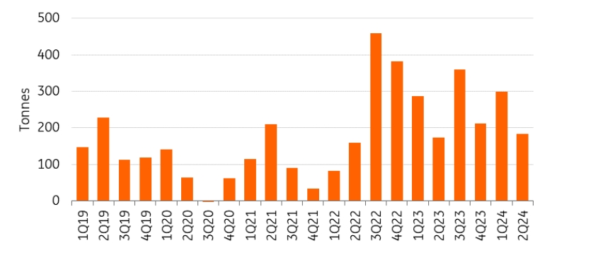 荷兰国际集团(ING)表示,黄金涨势才刚刚开始,数十年来最受期待的美联储降息为金价带来新动力。该机构上调对金价的预测,认为2025年金价平均为2700美元。 ING指出,今年以来,黄金一直是主要大宗商品中表现最好的商品之一。今年迄今,黄金已上涨逾20%,这得益于美联储降息预期、央行强劲购买以及亚洲强劲购买。地缘局势风险加剧以及11月美国大选前的不确定性带来的避险需求,也支撑了黄金今年创纪录的涨势。 ![]() 在8月举行的杰克逊霍尔会议上,美联储主席鲍威尔明示该行将于9月18日降息,并表示“现在是政策调整的时候了,前进的方向是明确的”。 鲍威尔确认美联储将很快开始降息后,金价上涨。较低的借贷成本对黄金有利,因为黄金不支付利息。自2023年7月以来,美联储一直将关键政策利率维持在5.250-5.5%的目标区间内,这是20多年来的最高水平。 现在黄金市场面临的问题是美联储放松政策的步伐。最新的美国就业数据好坏参半,加剧了有关美联储将在9月会议上降息幅度的持续争论。ING美国经济学家认为,美联储将选择降息50个基点,但结果可能相差甚远。 美联储准备降息,黄金创下新高: ![]() (来源:ING) ETF资金流出多年后转为正值: ![]() (来源:ING) 黄金ETF需求也出现复苏,全球黄金ETF连续四个月流入,所有地区均录得正流入,西方基金在8月份领先。 黄金价格上涨时,投资者持有的黄金ETF通常会增加,反之亦然。然而,在2024年的大部分时间里,黄金ETF持有量一直在下降,而现货黄金价格却创下了新高。ETF流量终于在5月份转为正值。 COMEX总净多头也持续上升,8月底环比增长17%,创2020年2月以来最高月末水平。 ![]() (来源:ING) 尽管金价上涨,但7月份央行黄金需求仍有所增强。世界黄金协会的数据显示,7月份各国央行净购买量增长一倍多,达到37吨。环比增长206%,创下自1月份(央行购买量总计45吨)以来的最高月度购买量。 波兰国家银行是当月的最大买家,其次是乌兹别克斯坦中央银行和印度储备银行。 2023年,各国央行增加了1037吨黄金购买量,这是历史上第二高的年度购买量,而2022年则创下了1082吨的历史新高。展望未来,ING预计,在当前的经济环境和地缘紧张局势下,央行的需求将保持强劲。 ![]() (来源:ING) ING总结时展望称:“我们认为,期待已久的美联储降息将推动金价创下新高。我们认为,11月的美国总统大选也将继续增加金价的上涨势头直至年底。地缘局势仍将是推动金价的关键因素之一。乌克兰和中东的战争以及中美之间的紧张关系表明,避险需求将在短期至中期内继续支撑金价。各国央行也预计将继续增持黄金,这应该会为金价提供支撑。” “我们现在预计第四季度金价平均为2580美元,年均价格为2388美元。明年金价将继续上涨,2025年金价平均为2700美元。” |