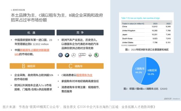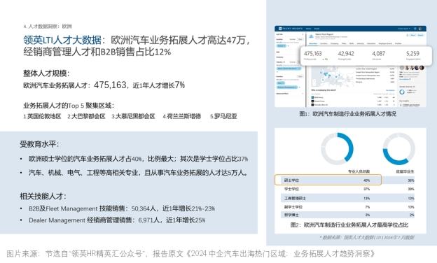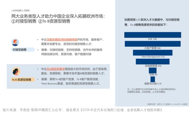 面对欧盟对华电动汽车征收高达38.1%的反补贴税,中国车企在欧洲市场的拓展遭遇了新的挑战。尽管如此,中国汽车制造商依旧凭借其价格优势在欧洲市场中保持竞争力。在法规遵从、智能化技术整合和数据安全等诸多挑战下,中国车企仍将欧洲视作其全球战略的关键一环,致力于通过品牌和技术创新来巩固其市场地位。 为了在全球汽车产业中获得认可,中国车企除聚焦于电动化和智能化技术的突破外,还同时在全球人才战略上进行精心布局。通过领英等平台,企业精准招聘并培养具有国际经验的高端人才,利用领英学习为员工提供持续的职业发展机会。此外,通过留学生招聘和校园招聘,让企业不断注入新鲜血液,为技术创新和市场拓展提供动力。 在欧洲市场的深耕,中国车企不仅在产品技术上进行创新,更在人才管理和培养上进行长远规划。领英发布《2024中企汽车出海业务拓展人才趋势洞察》报告,通过构建一个多元化、高技能的全球人才网络,使中国车企逐步提升其在全球汽车产业中的竞争力,为实现其全球化战略目标奠定坚实的基础。 01.深耕欧洲市场的“本地化”战略 中国车企在经历过安全、合规、绿色准入和供应链等层层检验后,更加注重吸取经验,持续升级在欧洲的“生产本地化+人才本地化”布局。比亚迪(002594)为代表的中国车企在德国、匈牙利等国家建立生产基地和研发中心,并通过收购欧洲本地品牌和产能,逐步迭代产品、升级品牌战略。 在人才方面,原本在欧洲的老牌 OEM 厂商中任职的资深专业人士和高管,正在被中国车企吸引、并担任关键职位。在中企的本地化战略中,本地高管人才也开始拥有更灵活的自主决策权。 02. 销售渠道:TO B、TO C的鲜明差异 从报告中所示,欧洲汽车市场的销售渠道主要分为 To B 和 To C 两大渠道: 一方面,B 端招采的市场份额高达 56%。虽然 B 端业务对于中国车企而言如何拿下车队、或企业订单,有着巨大的吸引力,但由于对非本地汽车企业而言,涉及到了诸多“隐形”门槛和合规要求,这一业务又变得十分具有挑战性。 另一方面,C 端汽车消费群体也与其他区域市场有所不同,如英、德等发达国家,因为汽车租赁市场、个人信用体系日渐成熟与完善,当地的消费者更加偏好租车;而家庭购车方面,消费者则倾向通过本地长期受信任的经销商购车。 目前进入欧洲市场的大多数中国车企也正是采用传统的经销商网络为主的业务模式。此外还有少数如领克、蔚来等车企,则是以提供订阅制服务,重点与租车公司渠道深度绑定,面向欧洲的租车消费者。 03.对接经销商TO B业务人才备受关注 据报告所示,一方面,为了和欧洲当地经销商集团更好地合作、助力中企品牌构建销售和服务网络为出发点,中国车企在当地更加关注:能够“对接经销商资源”、“与经销商高度协同合作”能力的业务拓展人才。另一方面,拥有 To B 的大客户资源的业务人才也是中企重点吸引的关键人才。 在《2024 中企汽车出海热门区域:业务拓展人才趋势洞察》报告中,拥有经销商管理技能的人才在欧洲有将近 7 千人,尽管近一年增长率超过 25%,但整体人才规模较小,供不应求。此外,拥有 B2B 技能以及车队管理技能的销售人才超过 5 万人,近一年增长 21%。 04. 欧洲新能源车市场:成为中企发力点 2023 年,欧洲 EV 新能源汽车注册量接近 320 万辆,占全球销量的四分之一。通过一系列新能源政策,如补贴、税收优惠和公共充电设施建设,欧洲正在持续推动电动汽车产业增长。这些激励措施持续促进了本土电动汽车产业的发展,相关机构预测 2024 年该趋势仍然会持续,欧洲将保持自己“世界第二大电动汽车市场”的地位。 聚焦在中国 EV 电车出口方面,2023 年中企对欧洲的电动汽车出口额达到了 208 亿美元,与 2022 年的 154 亿美元相比,呈现出显著的增长趋势。尽管欧盟从 2024 年 7 月,开始对中国新能源(600617)汽车加征最高 38% 的关税,但欧洲依然是中国 EV 电动汽车的主要出口市场,占中国总出口量约 44% 的份额。 05. 欧洲EV电车相关技能的人才趋势洞察 在新能源市场的增长趋势之下,同步刺激了当地上下游产业对具备电动汽车技能的人才需求。根据LinkedIn 经济图谱显示,从 2016 年到 2024 年,拥有电动汽车相关技能的汽车工人比例与电动汽车销量同步稳定增长,这一趋势也直接反映了欧洲市场对电动汽车专业人才日益增长的需求。 如图显示:截至 2024 年 3 月,在 11 个欧洲国家中,具备电动汽车相关技能的汽车行业工人平均占比已达到 4.4%,自 2023 年 3 月以来增长了 8.6%,且 2016 年以来每年平均增长率为 16%。其中,瑞典占比为 9.32%(即:每 100 名汽车行业人才中有 9 人掌握电动汽车技能),领先于整个欧洲其他国家;其次是德国,以 8.89% 的比例紧随其后,英国为 8.32%,位列第三名。 从欧洲区域的电动汽车技能的专业人才增长趋势来看,同样也为中国车企提供了可吸纳的高素质的 EV 电动汽车人才。相关电动汽车技能当中: AI技能在EV汽车技能中的重要性凸显 根据 Gartner 的预测,2024 年,汽车制造商将继续应对智能网联系统软件和电气化所带来的转型挑战,推动电动汽车(EV)发展进入新阶段。在这一背景下,AI 在电动汽车领域的价值和应用日益突出,培养AI 技能已成为各大车企人才战略的关键方向。 专业电气电子技术和数字化技能为培养主方向 根据本地区多家主流车企发布的业务人才技
