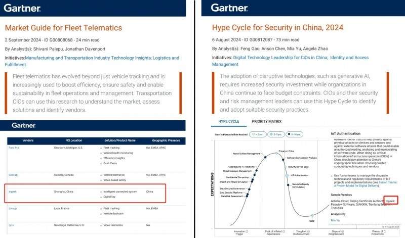 银基科技,一家专注于汽车智能化的科技公司,凭借在数字钥匙系统、智能连接系统ICS(Intelligent Connected System)及车联网安全领域的卓越表现,荣获国际权威研究机构Gartner的双重认可。银基科技被《2024 Gartner中国安全技术成熟度曲线报告》列为物联网认证(IoT Authentication)代表厂商,同时,也成为唯一一家上榜《2024 Gartner车队管理解决方案市场指南》的中国企业。 作为全球IT最为知名的IT咨询和研究公司,Gartner发布的每一份研究报告均根植于严谨无虞的事实分析,并以精密而高度结构化的方法论为后盾。Gartner的报告被誉为科技界的“奥斯卡“,引领着整个行业的风向与潮流,被公认为业界最真实、最权威的声音之一。 Gartner的研究报告,其影响力跨越国界,触及全球每一个科技前沿的角落。它们不仅是技术的晴雨表,对于企业高管而言,Gartner的研究报告更是选择技术和服务供应商时不可或缺的指南,能够揭示行业趋势的脉络,指明技术创新的方向与路径。 《2024 Gartner车队管理解决方案市场指南》《2024车队管理解决方案市场指南(Market Guide for Fleet Telematics)》深度剖析人工智能(AI)、机器学习(ML)、云和物联网(IoT)等技术在车队远程信息处理/车队管理中的创新性应用,为全球交通运输行业的发展绘制清晰的蓝图。 数字钥匙&ICS解决方案的核心在于通过将智能手机打造成车辆的数字孪生,实现远程控制、车辆进入、生态连接等功能。这种解决方案将用户身份与车辆紧密绑定,打通了人、车、移动生态之间的壁垒,引领了一场以数据可视化、操作自动化、运营智能化为特征的行业变革。它不仅重新定义了车队和移动出行服务提供商的常规业态,也极大地拓展了日常运营和商业模式的创新边界。 作为唯一一家上榜的中国企业,也是唯一一家做数字钥匙的软硬件一体解决方案的科技公司,银基科技数字钥匙和智能连接系统(ICS)正成为推动场景科技、车队管理现代化的关键一环,为全球交通运输行业的发展贡献着中国智慧与中国方案。 《2024 Gartner中国安全技术成熟度曲线报告》 Gartner的安全技术成熟度曲线是行业内公认的评估工具,它为企业提供了一个客观的技术发展趋势、商业价值和采购决策的判断依据。报告强调了物联网认证的重要性:随着物联网市场的快速发展,从汽车到智能家居和智能建筑,再到工业物联网(IIoT)和车联网,物联网的应用越来越广泛,物联网设备的强身份认证和认证机制更显得尤为重要,以智能汽车为例,物联网认证可以显著降低网络安全风险,保护车辆系统免受恶意攻击。 在汽车智能化的浪潮中,数字钥匙技术已成为车联网应用的核心,它不仅是实现车辆发动机数字化解锁的关键,更是维系整个车联网生态系统稳健运行的基石。 凭借十余年在物联网安全领域的深厚积累,银基科技将安全作为数字钥匙产品研发的基石。银基科技的数字钥匙产品是国内首个通过公安三所安全测评的,而且在身份认证、车端通信安全、数据安全存储、APP安全性等多个维度均通过了严格的国家安全标准测试。 银基科技CEO单宏寅先生表示:“我们深感荣幸能得到Gartner这一全球行业技术咨询和洞察的权威机构的认可。Gartner的肯定不仅是对我们智能汽车解决方案的极高赞誉,更是对我们在智能移动转型同辰潮中引领创新的明确证明。我们将以此为契机,不断探索前沿技术,拓展创新应用,致力于推动人、车、移动生态之间的深度融合与协同发展。我们坚信,通过不懈努力,我们将为打造一个可持续、智能化、高效的交通体系贡献重要力量,开创智能移动技术的全新时代。” 注一: Gartner的市场指南是一种市场研究工具,旨在帮助企业理解新兴市场的趋势、风险和机会,侧重于提供市场的整体分析。 - 市场洞察:市场指南帮助企业识别新兴技术和市场趋势,了解不同行业中的关键能力和供应商的市场表现。这对于决策者在快速变化的市场中做出明智的投资决策至关重要。 - 风险评估:在市场尚未成熟或产品多样化的情况下,市场指南提供了对风险和潜在收益的深入分析,帮助企业避免投资陷阱。 - 决策支持:市场指南为企业提供了关于市场动态和供应商能力的详细信息,帮助企业在选择技术和服务时做出更为明智的选择。 注二:Gartner的技术成熟度曲线(Technology Maturity Curve)是一个用于描述技术发展阶段和市场接受度的模型,通常表现为"S"形曲线。这个模型帮助企业理解技术从初始概念到成熟应用的过程,通常包括以下几个阶段: -技术触发:技术突破引起媒体和行业的关注。 -期望膨胀峰值:早期的成功故事引发过高的期望。 -失望低谷:技术未能达到预期,投资者和用户的兴趣减退。 -启蒙斜坡:技术的实际好处开始显现,逐步被更多企业接受。 -生产力平台:技术达到广泛应用,成为主流。 【免责声明】此文内容为本网站转载其它媒体或转载企业宣传资讯,仅代表作者个人观点,与本网无关。仅供读者参考,并请自行核实相关内容。 (责任编辑:郭健东 )