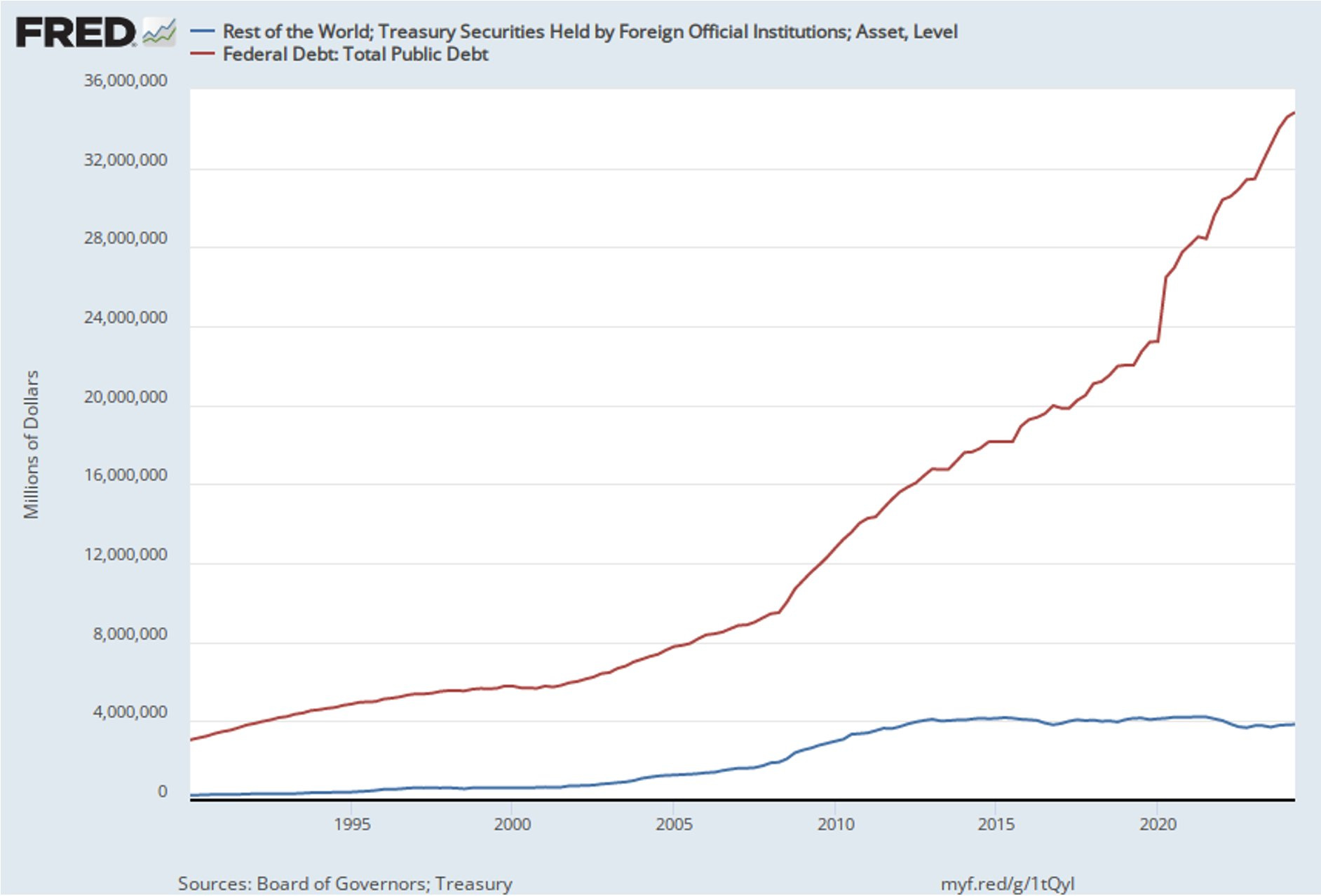 周一(9月23日)亚市午盘,黄金冲上2630美元创下历史新高,美联储9月降息50个基点的鸽派定价持续发酵。Recherche Bay贵金属投资研究家洛朗·莫瑞尔(Laurent Maurel)表示,另一个关键原因是美国赤字和债务创下新的世界纪录,债务总额达到35万亿美元。 莫瑞尔指出,美国债务总额(公共和私人债务总额)现已超过35万亿美元。 ![]() (来源:FRED) 美国债务绝大部分由国内持有,而外国实体持有的份额在总债务中所占比例正在下降: ![]() (来源:GoldSeek) 过去十年,外国机构持有的美国国债比例没有增加,而公共债务却持续增长。 “我们目前正在经历一个更加明显的债务扩张周期,自2000年以来,代表这一债务的曲线斜率已三次变陡,现在我们正处于美国公共债务新一轮加速的开始,”莫瑞尔续称。 ![]() (来源:Reuters) 他提到,美国公共债务已达到创纪录的34.5万亿美元,自6月以来,每100天就增加1万亿美元,债务占国内生产总值(GDP)比重目前为123.7%,接近疫情期间126.2%的峰值。 从历史上看,债务占GDP比率超过130%的国家经常会出现债务违约。 随着美元失去国际贸易主要货币地位,这种风险将进一步加剧。从逻辑上讲,如果外国减少使用美元,他们购买美国债务的意愿就会降低。尽管美元距离失去主导地位还有很长的路要走,但对美元的需求略有下降可能会加剧围绕美国债务激增的紧张局势,而美国债务激增需要更大的需求。 过去12个月,政府债务利息支出达到创纪录的1.12万亿美元,两年内翻了一番。债务负担现已超过社会保障资金,成为联邦预算中最大的支出。 债务的利息负担也超过了分配给国防的预算: ![]() (来源:US Congressional Budget Office) 历史学家尼尔·弗格森指出,在许多国家,当偿还债务的公共支出超过国防预算时,这通常标志着衰退的开始。 换句话说,弗格森认为,一个国家如果将更多的资源用于偿还债务而不是用于国防,那么它可能会失去主权或地缘政治权力。弗格森的“定律”清楚地表明,美国目前因其债务水平而处于危险境地。 另一个复杂因素是该国的公共债务期限非常短。这意味着该国将不得不在不久的将来为这笔巨额债务进行再融资。 ![]() (来源:GoldSeek) 莫瑞尔称,这种再融资的成本是美联储主席鲍威尔采取如此激进降息政策的主要原因。利率下降对于减轻财政部的债务再融资成本至关重要。这是否会引发对央行独立性的批评,或者快速降息是否会导致中期通胀再度抬头都无关紧要。紧急情况是政府融资,美国债务到期日图表完美地说明了美联储上周三决定降息50个基点。 第二个记录涉及美国赤字,包括两个方面:创纪录的预算赤字和创纪录的贸易赤字。 2024年7月,美国贸易逆差扩大至788亿美元,为2022年6月以来的最大缺口: ![]() (来源:BEA) 8月份的预算赤字远高于预期,这一数字已经高于上个月的2900亿美元,令人震惊:一个月内预算赤字就达到3800亿美元。这一数字创下了历史新高,比最悲观的预测高出800亿美元: ![]() (来源:GoldSeek) 美国财政鲁莽行为已跨入新高,这是债务负担加重和典型的选举期预算放松政策共同作用的结果。 这次,糟糕的数据并没有被忽视。预算下滑的消息一经公布,金价近期飙升。 利率下降对黄金产生了影响,但美国公共财政状况也在推动黄金价格上涨。自2023年春季决定性突破以来,黄金价格连续创下新高,标志着13年盘整期的结束。 |