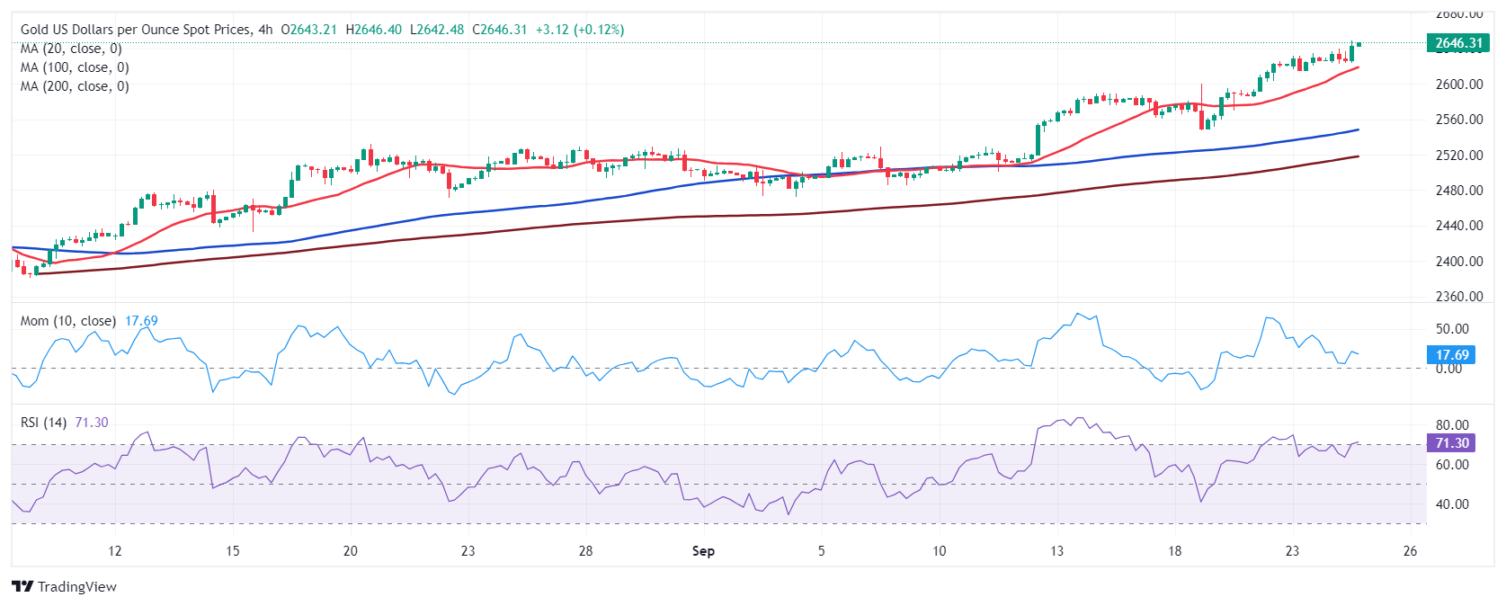 周三(9月25日)亚市盘中,现货黄金短线突然一波涨势,金价刚刚触及2670.53美元/盎司,创下历史新高,目前小幅回落周2661.72美元/盎司附近。FXStreet首席分析师Valeria Bednarik撰文,对黄金技术前景进行分析。 ![]() Bednarik指出,市场人士提高了对美联储再次降息50个基点的押注。美国经济数据出人意料地表现负面,损害对美元的需求。黄金价格在历史新高处交易,没有放弃上涨的迹象。 黄金延续了上一交易日的涨势。由于中东紧张局势和美国消费者信心恶化,增强黄金的避险吸引力,加上美国国债收益率下跌和美元疲软,黄金价格周二大涨近30美元。 谘商会周二报告称,美国9月消费者信心指数从8月份的105.6骤然下滑至98.7,这是自2021年8月以来的最大单月降幅。此前接受道琼斯调查的受访者普遍预测该指数将为104。 现货黄金周二收盘大涨28.59美元,涨幅1.09%,报2656.97美元/盎司。 以色列空袭黎巴嫩南部的真主党据点,且表示将继续施压。RJO Futures高级市场策略师Bob Haberkorn表示,金价当前飙涨系因对中东局势的担忧而进行避险。 Haberkorn认为,伊朗可能有下一步行动,所以黄金将继续创下新高。因市场越来越担忧中东全面战争,2024迄今金价已上涨28%。 美联储开始放松货币政策也推动金价的上涨,因为黄金不生息,降息可削减持有黄金的机会成本。 黄金短期技术前景 Bednarik表示,金价没有放弃上涨的迹象。在日线图上,金价不断创下更高的高点和低点,而技术指标在超买水平内维持温和的看涨斜率。与此同时,金价远高于看涨移动平均线,20日简单移动平均线(SMA)目前徘徊在2545美元/盎司附近。 Bednarik补充道,近期形势也使金价走势风险偏向上行,尽管一些背离表现可能暗示金价会出现修正性下滑。在4小时图表中,移动平均线在远低于当前金价的水平加速向上,这与持续的买入兴趣相符。然而,动量指标在积极区域持续走低,偏离价格走势。最后,相对强弱指数(RSI)保持积极的倾向,目前正升至接近超买读数的水平。 ![]() (现货黄金4小时图 ) Bednarik给出金价最新的重要支撑位和阻力位: 支撑位:2628.10美元/盎司;2613.50美元/盎司;2598.10美元/盎司 阻力位:2675.00美元/盎司;2690.00美元/盎司 北京时间11:27,现货黄金报2661.40美元/盎司。 |