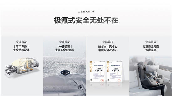 近日,极氪智能科技旗下豪华大五座SUV极氪7X正式上市,包括后驱智驾版、长续航后驱智驾版和长续航四驱智驾版三个版型,官方零售价为22.99万元、24.99万元和26.99万元,并于同期开启全国交付。 发布会上,极氪智能科技CEO安聪慧首先发布捷报,极氪7X从预售到正式上市,20天订单突破5.8万单,足以证明这款纯电SUV的市场热度。值得一提的是,极氪7X一口气四项全球首发四项安全防卫“穹甲车身”安全结构设计、儿童安全气囊智能座椅、“一键破窗”主驾安全破窗器、NESTA中汽中心电磁安全双认证,展现了极氪对极致安全“偏执狂”的一面. 区别于许多纯电SUV,极氪全球设计副总裁Stefan Sielaff详细介绍了极氪7X的独到设计。极氪7X拥有以弧光天际轮廓为顶线的非溜背造型,在空间、豪华感和空气动力学之间达到最佳平衡,实现了乘员座舱空间的最大化。 极氪7X把SUV该有的大空间还给用户 通过简洁而富有雕塑感的线条,巧妙地将尖端技术隐于无形。例如ZEEKR Stargate一体式智慧灯幕,作为前脸的点睛之笔,它将全球最长的93英寸巨幕灯带天衣无缝融入汽车外观设计当中,塑造了全新的交互方式;还有极氪7X的各类传感器和高科技元件,也是巧妙隐藏于车身各处,从而让车身更加优雅、精致。 极氪7X的隐藏式设计 安全是检验豪华的第一标准。发布会上,极氪智能科技副总裁朱凌强调,极氪式安全从不满足于应试工况,而是在实战中造就“公路坦氪”。基于吉利强大的汽车安全数据库,极氪从5万多起真实事故案例中,总结风险最大,难度最高的工况,做定制化的安全开发,为极氪7X带来4项全球首发安全功能。 极氪7X带来4项全球首发安全功能 基于中国道路真实交通事故数据,乘用车与货车的事故非常常见,尤其以侧面碰撞最为高危。为此,极氪7X打造了“穹甲车身”安全结构设计,采用行业最先进的一体成型热气胀工艺,将2000兆帕超高强度热成型钢,从A柱一直延伸到后排头部,每一根的长度足足2.35米,中间没有任何铆接和焊点,是迄今为止乘用车最长的一体成型热气胀钢柱。不仅如此,还在B柱和前后车门内部,采用了同样的2000兆帕的加强板。整车应用2000兆帕超高强度热成型钢,总长度超过12米,占上车身总重量超过10%,全系标配,全球第一。在“穹甲车身”基础上,极氪7X打造出8横9纵10宫格的防撞结构,加上一体式压铸的后端铝车身,形成更强大的720度安全盔甲,保护整车乘员和电池包。 极氪7X的「穹甲车身」安全结构设计,超高强度热成型钢总长全球第一 在极限中验证安全表现,极氪7X在重卡十字路口连环碰撞的实测工况中,「穹甲车身」扛住了8吨重卡以每小时50公里的速度带来的侧面碰撞,瞬间冲击力超过国标8倍,碰撞后乘员舱生存空间完整,车内乘员得到了有效保护。 为给予儿童最安全的出行保护,极氪联合全球儿童安全领域顶级合作伙伴,打造全球首款儿童安全气囊智能座椅,并开发专属气囊弹开算法,能将碰撞发生时的颈部弯曲度降低50%以上。不仅如此,这把座椅还自带通风功能,通过智能接口与车辆座舱数据打通,实现对儿童状态的智能监测与主动服务。 在极氪,安全没有小概率事件。针对城市内涝这样的小概率极端天气所带来的车辆险情,极氪式安全再升级,带来全球首个“一键破窗”功能,并在极氪7X全系标配。有了这样的安全黑科技,在紧急情况下,通过触发主驾门板下方储物槽顶部的装置,可真正实现毫秒级破窗逃生,即使在水中断电时也可通过全机械触发方式快速逃生。 极氪7X首创带有「一键破窗」功能的主驾安全破窗器,应对极端危险场景 极氪式安全,不仅保护用户,更要惠及行业。极氪宣布将申请了专利保护的“一键破窗”技术,对全行业进行免费开放,希望通过更多安全功能的普及,让更多用户在紧急情况下获得保护。 在看得见的安全隐患之外,极氪还以乎偏执的严苛来应对看不见的风险。为了更极致的电磁安全,极氪7X 制定了行业最严格的电磁辐射安全开发验证标准,并通过了权威机构对于乘员电磁防护和车辆电磁防护的双重认证,分别是NESTA中汽中心的《乘员电磁防护安全》和《整车电磁抗扰安全》认证。 极氪7X就是新能源时代最安全的SUV 打造没有焦虑的纯电SUV,极氪7X的安全感来自“三个800”的全生态解决方案。极氪7X搭载第二代金砖电池,续航里程超600公里,最大充电倍率5.5C,仅需10.5分钟电量可从10%充到80%,20分钟就可以满电出发;搭载100度超快充麒麟电池的版本,续航里程最高780公里,充电15分钟,最大可增加546公里。 极氪7X让纯电SUV没有焦虑 续航实测数据显示,搭载100度麒麟电池的四驱版极氪7X,在高速+快速路占比超70%的工况下,实测续航达成率均超85%,续航能力可覆盖80%的城际长途需求。即便在跨省出行时,极氪7X也仅需在高速上充一次电,就能跑完一千公里。 在运动性能上,极氪7X全系标配与001 FR 相同架构的高性能碳化硅电驱系统,后驱版本最大峰值功率310千瓦,零百加速最快5.7秒;四驱版本最大峰值功率475千瓦,马力超过645匹,零百加速最快只需3.8秒。 极氪7X零百加速最快只需3.8秒 极氪7X全系标配前双叉臂、后五连杆独立悬架,全系标配液压衬套。不仅如此,7X还可搭载由感知系统与CCD电磁减振和空气悬架组成的「智能魔毯」,当感知前方路面不平时,毫秒级调整悬架状态,进一步提升车辆通过时的舒适与平稳。 通过性和脱困性,是纯正SUV的基本功。极氪7X的离地间