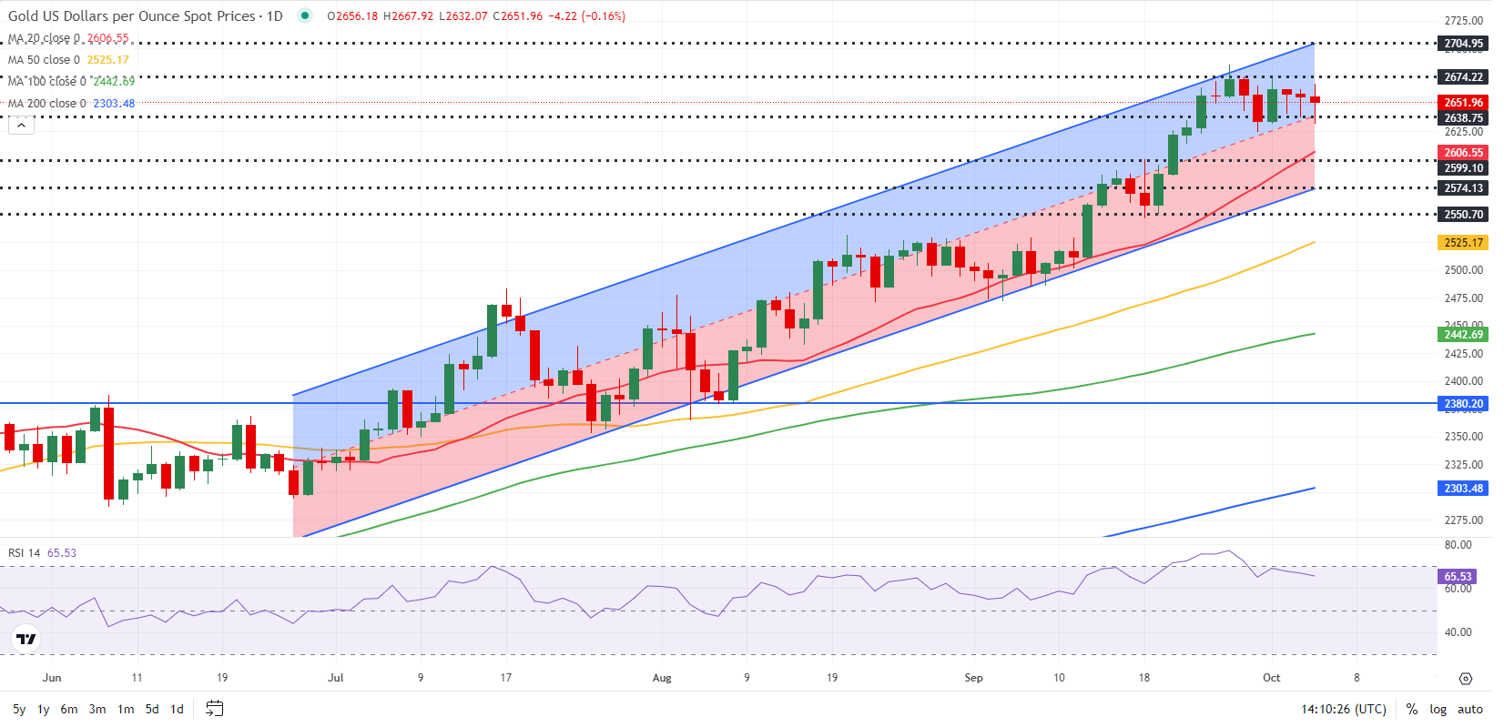 周一(10月7日)亚市早盘,现货黄金震荡微跌,目前金价位于2649美元/盎司附近。FXStreet分析师Eren Sengezer撰文,对金价本周走势进行预测和分析。 Sengezer指出,上周,由于美元的强势抵消对黄金日益增长的避险需求,金价难以在任何一个方向上做出决定性的变动。围绕中东冲突和美国通胀数据的事态发展可能会推动金价本周的走势。 ![]() 上周五(10月4日),受美国非农就业报告和地缘政治局势影响,黄金市场出现极为剧烈的波动。美国劳工部上周五报告称,美国9月新增非农就业人数总数为25.4万,高于8月份修正后的15.9万人,也好于市场预期的15万人。9月失业率环比下降0.1%,降至4.1%。市场预计失业率将稳定在4.2%。 强劲的非农报告出炉后,金价一度暴跌至2631.92美元/盎司。但随后金价自低点大幅反弹,最高触及2670.22美元/盎司。截至上周五收盘,现货黄金收报2653.26美元/盎司,日内仅微跌0.1%。 分析师指出,地缘政治紧张局势限制投资者出售黄金的意愿。 当地时间10月4日,一名美国国务院高级官员表示,以色列方面并未向拜登政府保证不会针对伊朗核设施进行报复性打击。 以色列和伊朗从未如此接近于在席卷中东的战争中开辟一条新的、危险得多的战线。 美联储会议纪要和美国CPI数据恐点燃本周行情 Sengezer称,本周上半周,美国经济将不会发布任何重要的宏观经济数据。周三,美联储将公布9月份政策会议的纪要。 Sengezer指出,投资者将密切关注围绕将政策利率下调50个基点的讨论。如果美联储纪要显示,政策制定者倾向于将大幅降息作为逐步放宽政策的第一步,而不是作为对劳动力市场日益冷却的迹象的回应,那么直接的反应可能会提振美元。芝加哥商品交易所集团(CME Group)的“美联储观察工具”显示,市场仍认为美联储在11月的下一次政策会议上选择再降息50个基点的可能性超过30%,这表明如果投资者倾向于认为美联储会降息25个基点,美元还有更大的上行空间。 另一方面,如果会议纪要反映出决策者在数据显示经济衰退或劳动力市场前景恶化的情况下,对进一步大幅降息持开放态度,美元可能会承受压力,并推动黄金上涨。 周四,美国劳工统计局将公布9月份消费者物价指数(CPI)数据。核心CPI环比数据可能引发黄金的反应。该数据不包括波动性较大的商品价格,且没有受到基数效应的扭曲。市场预计,继8月份0.3%的涨幅之后,9月份核心CPI环比将上涨0.2%。Sengezer指出,如果读数为0.2%或更低,可能会对美元造成压力。而0.5%或更高的涨幅可能会导致投资者怀疑反通胀过程,并提振美元,导致金价转向下行。 Sengezer表示,市场参与者还将密切关注来自中东的头条新闻。如果以色列对伊朗进行报复,而伊朗不后退一步,导致危机加深,黄金可能会继续受益于避险需求。 黄金在政治动荡时期被用作避险投资。部分归因于避险买盘,黄金价格近期触及历史新高2685.42美元/盎司。 黄金本周技术前景 Sengezer称,日线图上的相对强弱指数(RSI)小幅回落至70下方,反映出卖家不愿押注黄金将持续下跌。在下行方面,从6月底开始的上行通道的中点在2640美元/盎司形成第一个支撑位。 如果金价失守上述水平,下一个支撑位可能在2605-2600美元/盎司(20日简单移动平均线,静态水平),接下来是2575美元/盎司(上升通道的下沿)。 ![]() (现货黄金日线图 ) 上行方面,金价短期阻力似乎在2675美元/盎司(静态水平)形成,若突破该障碍,金价接下来的阻力在2700-2705美元/盎司(整数关口,上升通道的上沿)。 北京时间09:30,现货黄金报2649.51美元/盎司。 |