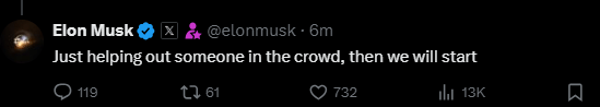 凤凰网科技讯 10月11日,特斯拉将举行“Robotaxi Day”活动,活动主题口号为“We,Robot”(我们,机器人)。目前发布会还没有开始。特斯拉CEO埃隆・马斯克表示,有人出现了医疗紧急情况,我们已经照顾好,很快就会开始。 据悉,此次发布会备受外界关注,特斯拉计划发布全新一代的自动驾驶出租车。然而,突发事件打乱了原定的计划。 来源:凤凰网 (责任编辑:宋政 HN002)