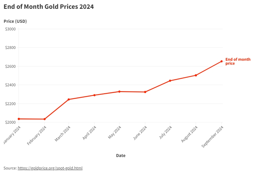 美媒指出,黄金价格可能更早达到3000美元,美联储最近降低的利率、新的投资者吸引力以及中东战争,为贵金属避险投资提供支撑。