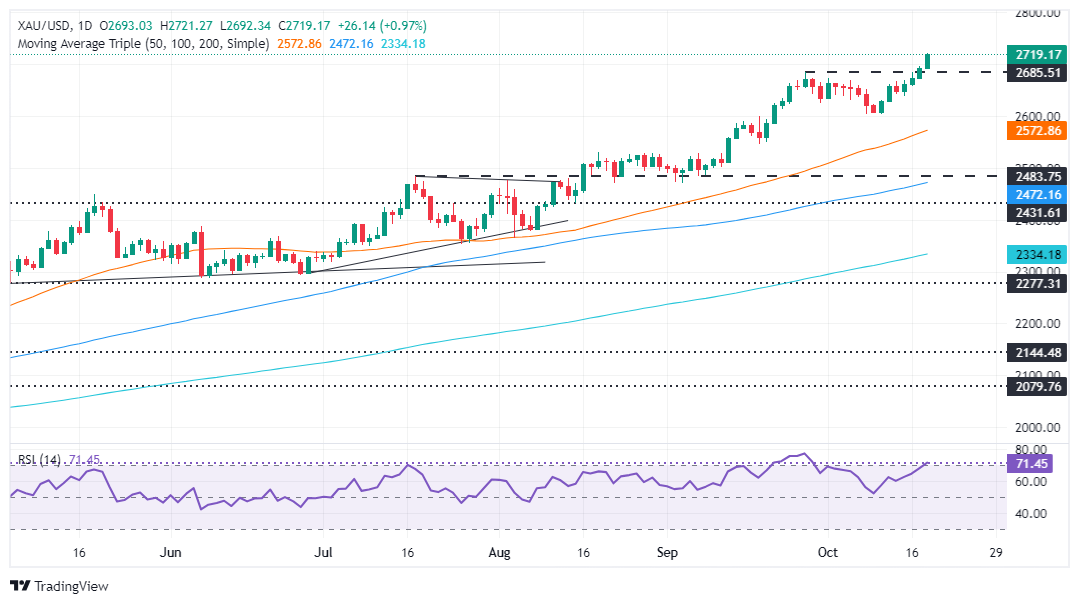 周一(10月21日)亚市盘中,现货黄金持续上涨,目前最高触及2731.87美元/盎司,再度刷新历史高位。 ![]() 当地时间10月20日晚间自以色列方面获悉,有以色列官员透露,以色列对伊朗导弹袭击的回应已经“板上钉钉”。消息还显示,10月19日发生的以色列总理内塔尼亚胡住所遭无人机袭击事件不会影响以色列对伊朗袭击的规模或时间。 FXStreet分析师Christian Borjon Valencia指出,因地缘政治紧张局势和对美国大选的担忧推动了对避险资产的需求,黄金触及历史高位。 Valencia称,在真主党威胁要升级冲突后,金价上周五延续涨势。黎巴嫩真主党武装组织上周五表示,它对以色列的战争进入了一个新的升级阶段。 真主党在一份声明中说:“与以色列敌方的对抗进入一个新的升级阶段,这将反映在未来几天将发生的事。” 现货黄金上周五收盘大涨28.64美元,涨幅1.06%,报2721.38美元/盎司。 美国彭博社周一报道称,黎巴嫩真主党无人机突破以色列防空系统,并在以总理内塔尼亚胡私人住宅旁边爆炸的第二天,内塔尼亚胡与高级安全官员举行了一系列会议,讨论对伊朗采取的下一步行动。 真主党的无人机10月19日精准锁定内塔尼亚胡位于特拉维夫北部海滨的房子,令许多以色列人感到震惊。虽然当时内塔尼亚胡和妻子都不在家,也没有人在这起袭击中受伤,但内塔尼亚胡和他的内阁部长说,这是以色列必须向伊朗进行报复的又一个理由。 内塔尼亚胡发表声明说:“伊朗代理人真主党试图暗杀我和我的妻子,这是一个严重的错误。” 以色列外长卡茨10月19日晚告诉以色列第14频道:“毫无疑问,又有一条红线被跨越。我们非挫败伊朗的威胁能力不可。” 贺利氏金属德国公司(Heraeus Metals Germany)贵金属交易员Alexander Zumpfe评论称,除了地缘政治因素外,“对美国总统大选的担忧和对宽松货币政策的预期进一步推动金价上涨。” 人们普遍预计美联储将在11月的会议上降息25个基点。根据CME的“美联储观察工具”,美联储11月降息25个基点的概率的达到92.9%。 如何交易黄金? Valencia指出,黄金价格的涨势依然完好无损。正如相对强弱指数(RSI)所描绘的那样,势头支持多头,该指数飙升并转为超买,但没有盘整的迹象。在这种背景下,黄金阻力最小的路径是上行。 从技术面来看,Valencia表示,金价的第一个阻力位将是2750美元/盎司,随后是2800美元/盎司。 ![]() (现货黄金日线图 来演:FXStreet) 另一方面,Valencia补充道,如果金价从历史高位回落至2700美元/盎司以下,则可能为回调铺平道路。金价第一个支撑位将是10月17日高点2696美元/盎司,随后是10月4日高点2670美元/盎司。 北京时间11:16,现货黄金报2729.64美元/盎司。 |
