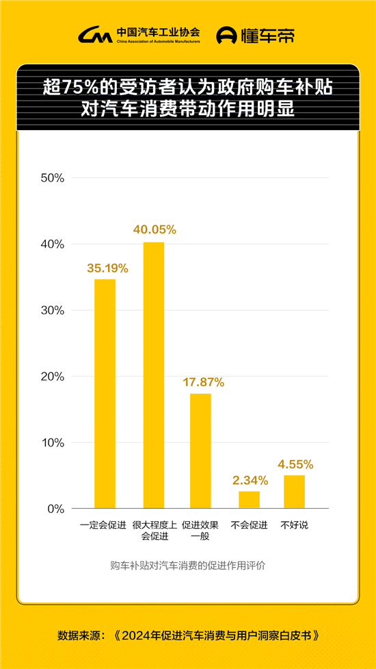 中国经济网北京10月21日讯(记者 张懿) 2024王府井论坛近日在京开幕。作为本届论坛分论坛之一,由懂车帝承办的“汽车消费发展”论坛同日举行,多方嘉宾围绕汽车促消费政策环境、中国汽车市场发展趋势、汽车消费升级及新零售特征等议题分享观点并展开讨论。 “汽车消费发展”论坛现场 张懿/摄 现场嘉宾普遍认为,随着中国汽车市场走向总量平稳、结构升级的新阶段,汽车产业链全体企业需要共同携手,以科技创新推动汽车行业新质生产力发展,使中国汽车走向量质齐升的高质量发展之路。 当天,懂车帝联合中国汽车工业协会发布《2024年促进汽车消费与用户洞察白皮书》。白皮书指出,2024年汽车促消费政策成效显著,置换更新已成汽车消费主流需求之一。在白皮书调研中,近三分之一受访者认为消费券是促使自己购车的直接原因,超75%受访者认为发放补贴对提升购车意愿作用较强。不过,受访者中享受过购车补贴优惠的仅占两成,以补贴提振消费仍有很大提升空间。 《2024年促进汽车消费与用户洞察白皮书》发布 张懿/摄 多方通力协作,汽车消费市场健康有序发展 汽车是国民经济支柱产业,促进汽车消费是推动经济发展核心手段之一。2024年以来,汽车促消费政策密集发布,但在宽松的政策环境下,市场总量增速放缓、行业“内卷”加剧、经销商利润下滑等问题也日益凸显。实现汽车消费健康、有序、高质量发展,是汽车产业链面临的共同问题。 北京市商务局流通发展处处长耿英贞表示:“汽车是北京市社会消费品零售额的第二大品类,面对总量需要控制,消费需求旺盛的实际情况,‘更新换代’是北京汽车市场的发力点。北京正在以汽车消费为牵引,向汽车全产业链进行全面的布局,以更完善的产业生态,为汽车市场的健康有序发展铸就新的基石。 国家信息中心汽车市场处处长丁燕分析指出,受以旧换新补贴政策的影响,15万元以下的新能源车成为最大的增量价格段。然而,低价并非消费者的核心诉求,高品质才是趋势。企业需要结合趋势在销量与利润之间找到平衡。如今年轻一代消费者已经习惯于通过线上线下方式购车,且新能源车用户更愿意通过网上分享。 中国汽车工业协会副秘书长陈士华 张懿/摄 中国汽车工业协会副秘书长陈士华则认为:“当前中国汽车产销增速逐步放缓,燃油车市场继续下滑,但新能源车增长迅速,9月新能源乘用车销量占比已达54.6%;且中国品牌持续向上,1-9月中国品牌乘用车销量占有率已达63.8%,新能源占有率则超过80%。作为工业经济稳增长的压舱石,汽车补贴政策还需要持续促进,降低行业库存压力,提升盈利能力,改变行业整体增量增收不增利的局面。” 懂车帝战略负责人李鑫从平台视角出发,探讨如何促进汽车消费流通。他提到,数据显示用户成交决策周期拉长,政府补贴对于应对消费者持币待购有巨大潜力。2024年,懂车帝被指定为全国汽车以旧换新信息服务指定平台,独家承接全国多地汽车置换更新补贴和汽车消费券发放。截至10月9日,懂车帝已向13万名消费者提供补贴申请服务,带动汽车消费超232亿元。同时,懂车帝也在升级APP页面,在展示车系和留资的基础上,加入当地商品、配置、试驾、价格等内容,通过向用户提供更全面的信息,促进用户更快成交。在3个城市的测试显示,线索量、成交量、成交转化率均有上升。 政策加持,近8成消费者认为补贴提升购车需求 分论坛上,懂车帝联合中国汽车工业协会发布了《2024年促进汽车消费与用户洞察白皮书》,围绕政策研究、消费洞察、企业动态、专家观点、行业倡议等五个方面,研究汽车促消费政策成效,为中国汽车行业发展提出建议。 通过消费者问卷调研发现,补贴对汽车消费提振效果明显,置换更新已成汽车消费主流需求之一。超半数受访者认为消费券对提升购车意愿作用明显:近1/3受访者认为消费券是促使自己购车的直接原因;超75%受访者认为发放购车补贴对促进汽车消费作用较强。调研还发现,受访者中享受过购车补贴优惠的仅占2成,补贴刺激仍有很大提升空间。 主办方供图 补贴还带动了老旧车型汰换和新能源车比例提升,推动汽车消费结构变化。调研显示,约40%置换更新旧车为10年以上的长龄车,更换车型中超60%为新能源车型。从车型价格分布看,超半数消费者购车价格在10-20万元区间,中国汽车消费结构正从“哑铃型”向“纺锤型”转变。 主办方供图 此外,白皮书还对消费者补贴领取体验进行了研究。超80%已享受购车补贴的消费者认为:缩短补贴到账时间有利于拉动政策效果显现;加快补贴资金流转速度,能够有效增强政策吸引力。而在政策信息获取和领取方面,懂车帝、抖音等平台是消费者了解政策内容的主要渠道。一方面,短视频等多元化渠道极大拓展了政策传播覆盖面,让更多消费者了解政策;另一方面,汽车垂媒平台能够精准、高效触达高意向汽车选买车用户,增加政策转化效率。 除用户调研外,白皮书中还发起“技术创新、服务创新、产品创新”三大倡议,呼吁汽车产业链全体参与者以技术创新为行业发展注入新动能,加强产业协同,避免恶性“内卷”,为消费者提供优质、多元的购车服务和汽车产品。 国务院发展研究中心市场经济研究所副所长、研究员王青,乘用车市场联席会秘书长崔东树等专家认为:未来10年中国新车销量将大致保持在2%左右的年均