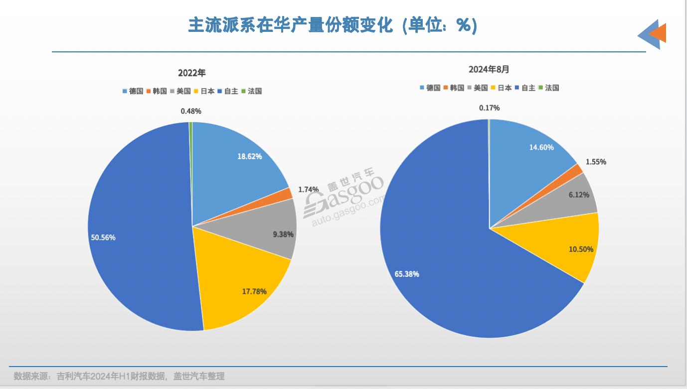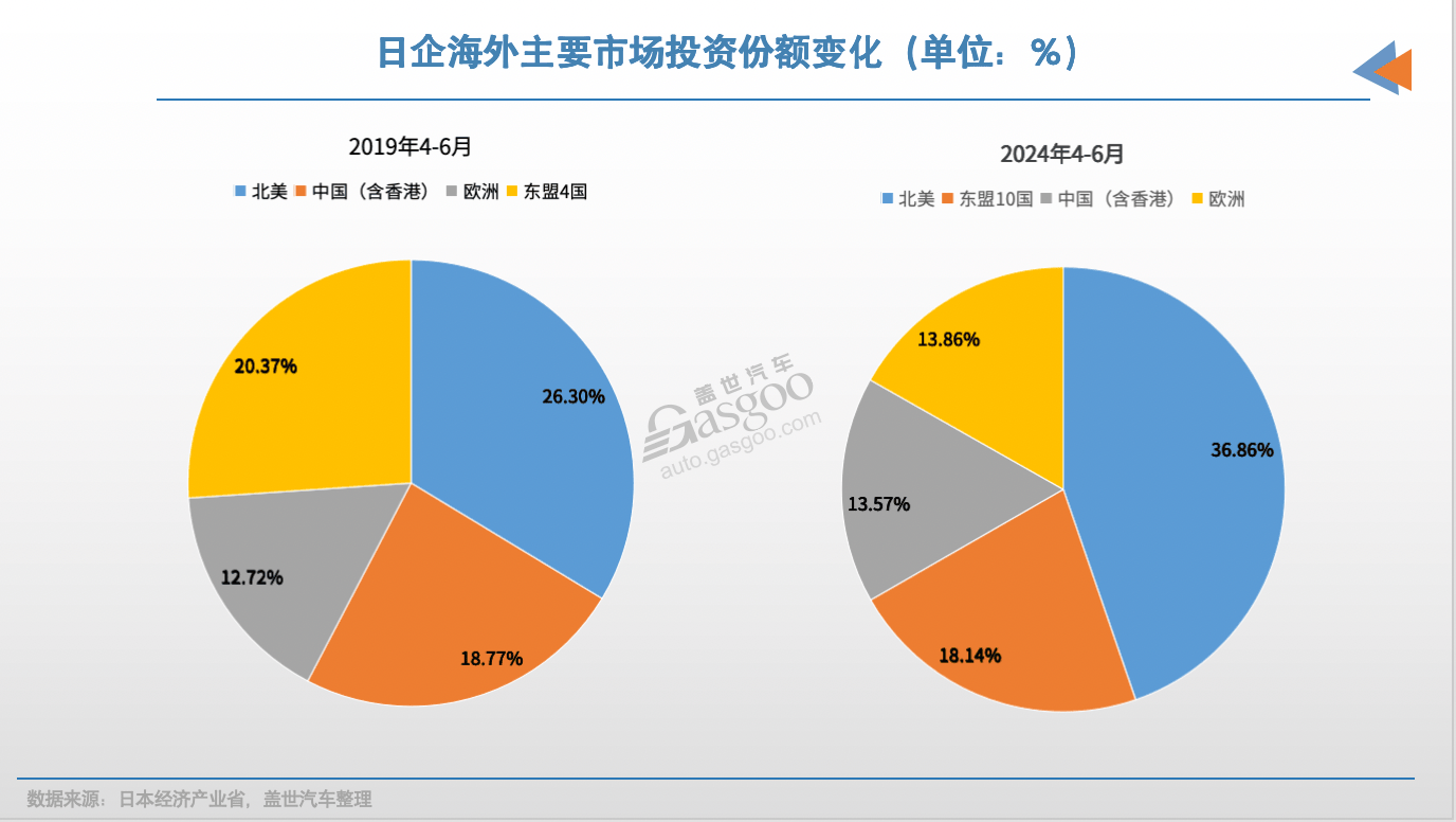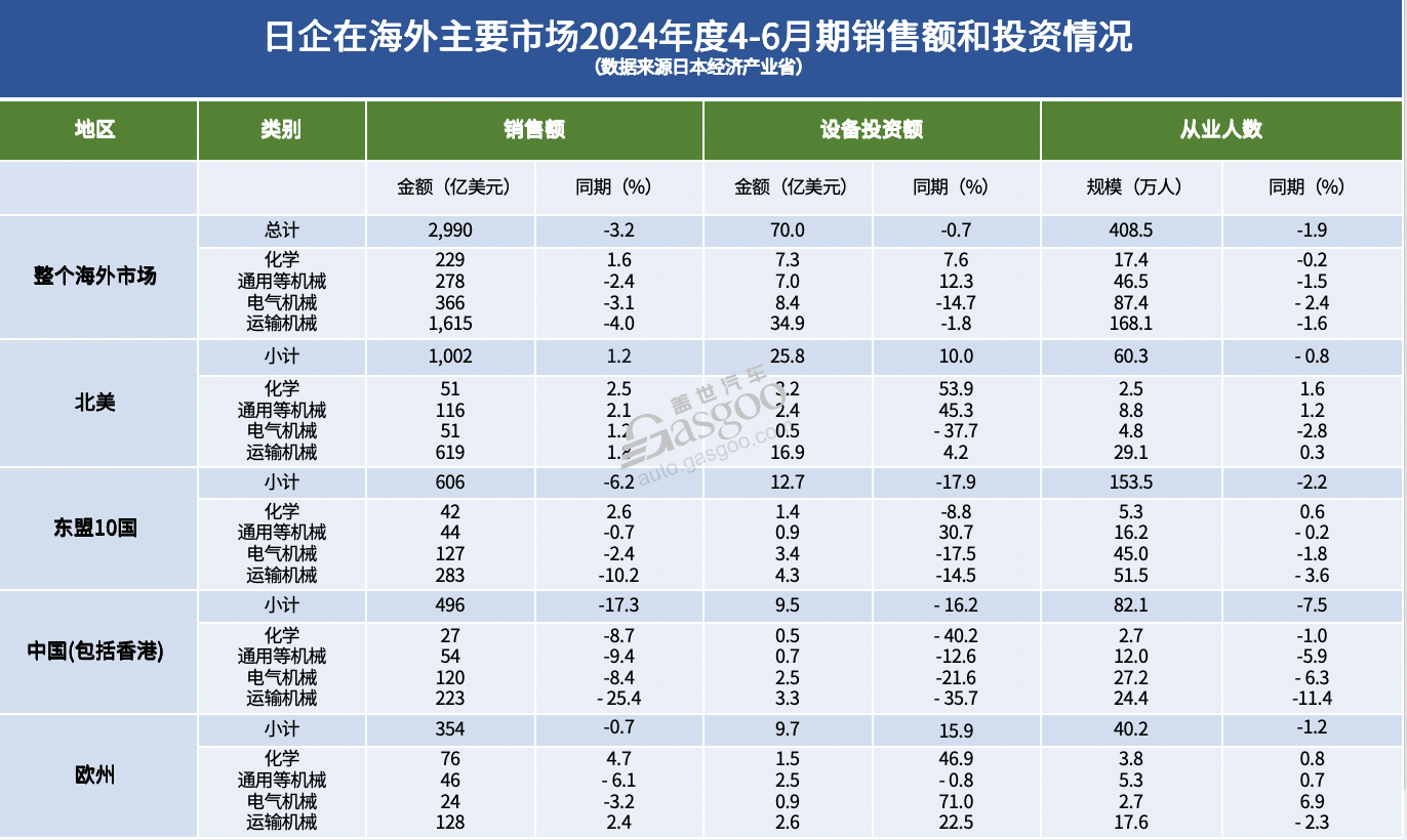 日企在中国市场的投资走势,与日系车的兴衰较为一致。 2020年至2021年期间,日系车在华攀上高峰,日企的销售额和投资额也随之水涨船高。然而近两年来,日系车在华市场份额骤降10%,产销大幅下滑,日企的投资也随之降温。 据统计,目前约有8000家日本企业在中国经营。然而今年初的调查显示,接近半数日企计划缩减投资规模或暂缓继续投资。 日本经济产业省9月底发布的2024年第二季度《海外当地法人季度调查》,进一步印证了这一趋势。数据显示,日本企业在中国大陆及香港的设备投资额同比下降16%,已连续7个季度呈下滑态势。 业内人士评论称,“日本企业尚未停止其脱离中国的投资策略”。面对中国市场竞争环境的变化,以及全球地缘政治风险等因素,日企正在重新评估其全球投资布局。 值得注意的是,日系车在华市场份额萎缩,可能对某些省份产生较大影响。 图片来源:日产中国 中国市场吸引力下降 本次日本经济产业省调查了约5300余家日企海外法人(日企持有过半股份的制造企业)。 2024年度4-6月期,日企海外设备投资额为70亿美元,同比微降0.7%。这主要与中国和东盟10国运输机械投资额下滑有关。 具体到中国市场,日企的设备投资降幅远超整体水平。今年4-6月期间,日企对中国市场的设备投资额同比下滑16%至9.5亿美元,连续七个季度出现负增长,且两个季度低于欧洲(4-6月为9.7亿美元)。对应的销售额为496亿美元,同比大幅减少17.3%。 由此带来的问题是,在日企海外投资版图中,中国市场的份额较2019年同期下滑了5个百分点至13.6%。与之相对的是,日企对北美市场的投资却在加大。自2019年以来,日企对北美市场投资份额增加了约10个百分点,目前占比接近四成。 在中国市场投资额的下滑,主要体现在电气机械和运输机器两大投资领域。这两大领域占日企对华总投资的60%份额。今年4-6月,日企对上述领域的投资额为5.8亿美元,同比降幅在20%以上。对应的销售额为343亿美元,降幅超双位数。 与此同时,两大领域针对中国市场的雇佣人数也大幅下滑,从2021年的61万人降至51万人,三年缩减了10万人。 而这两大领域与汽车产业强相关。在业内人士看来,这背后折射出日系车企在华经营状况的变化。先是铃木宣布全面退出中国市场。2023年,三菱汽车因未能扭转颓势也选择撤离。马自达在华目前也岌岌可危,年销量萎缩至10万辆左右。 近两年,日产、丰田和本田也因业绩不佳而开始调整产能,缩减在华员工。比如,今年6月,日产合资品牌东风日产关停了常州年产13万辆的工厂,同时传出武汉云峰工厂将“代工”岚图汽车的消息。 本田则关闭广汽本田和东风本田各一条生产线来优化产能。这一调整使得本田在中国的总产能从149万台降至120万台,同时导致约3000人失去工作。 丰田也未能幸免,其合资品牌广汽丰田去年解除了与千名劳务派遣员工的合同,而另一合资品牌一汽丰田今年也传出搬迁和裁员的消息。 这波“寒潮”还蔓延至日系汽车零部件供应商。本田关联公司J-MAX计划出售广州工厂部分资产,缩减在武汉的产能。经营汽车钥匙等业务的阿尔法公司则计划整合在华产能,2025年3月解散湖北子公司。去年,藤仓关闭了一家在华线束工厂。 尽管日产汽车社长内田诚曾强调,“我们正竭力保住目前的势头”。但从日企当前在华的处境可知,这些努力似乎收效甚微。 没跟上中国电动化转型脚步 近两年,日系品牌在中国市场发展遇阻,投资份额大幅下滑,原因在于未能跟上中国电动化转型的脚步。 众所周知,日本汽车产业包括其政府,长期以来将新能源汽车的未来押注在氢能源领域,而非纯电动技术。 这一战略选择可以追溯到上世纪90年代,当时包括通用、丰田、本田在内的多家汽车巨头在电动化领域的尝试均以失败告终。这使得日本汽车产业对纯电动汽车的前景持悲观态度,转而将目光聚集在氢能源汽车的研发上。 商用车用大容积高压储气瓶,图片来源:丰田中国 丰田汽车会长丰田章男就曾多次公开表示,“电动车是伪环保”,并坚持认为“氢能源才是碳中和的终极需求”。主要市场电动汽车需求低,也让日系缺乏投入动力。日本本土市场以及其第一投资目的地美国,目前新能源渗透率都不到10%,远低于欧洲和中国市场。 然而,从技术复杂度和商业化的角度来看,纯电动车普及速度明显快于氢能源汽车。尤其是在中国市场,在政府大力支持下,特斯拉和中国本土品牌共同推动电动汽车市场增长。短短5年时间,中国新能源(600617)年销量就从百万辆级别攀升至接近千万辆的规模。目前,中国品牌电动汽车全面进军20万元以下市场,而这是德系和日系车企的腹地。 这种前所未有的市场扩张速度,让包括日系在内的许多外资品牌措手不及。作为头部合资品牌中转型最慢的派系,日系在中国本土插混产品价格逐步下探并与同级合资竞品趋同后,受到的冲击最为严重。 日系车企在家用车市场长期以来的竞争优势,如“耐操省油、驾驶平顺、用车成本低”等,在电动化浪潮中不再明显。 数据显示,外资品牌在中国市场的份额已跌破50%,其中日系品牌的颓势尤为明显。乘联会数据显示,日系市场份额较2020年下滑了10个百分点至14.3%。反观中国品牌,凭借新能源将市场份额扩大至56%。 日系产量也相应大幅下滑。根据盖世汽车研究院的数据,2022年到今年上半年,四大日系在华合资品牌年产量已减少了