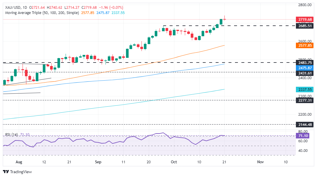 周一(10月21日)纽约交易时段,因美债收益率上升和美元走强,抵消了美国总统大选和中东战争带来的不确定性支撑,现货黄金在创下历史新高后大幅回落,最终当日收盘也转为下跌。 现货黄金在周一纽约时段早盘一度触及2740.58美元/盎司,创下纪录高位。但随后金价大幅下挫,纽约时段盘中金价最低一度跌至2714.13美元/盎司。 ![]() 截至周一收盘,现货黄金下跌约0.1%,报2719.49美元/盎司。 FXStreet分析师Christian Borjon Valencia指出,在周一的北美交易时段,黄金价格再创新高,但由于美国国债收益率上升和美元走强,金价暂停上涨。在过去的五个交易日里,中东的紧张局势和美国总统选举的不确定性增加了流向避险资产的资金。 10年期美债收益率升至12周高点,美元指数也上涨,这使得黄金对海外买家来说更加昂贵。 RJO Futures资深市场策略师Daniel Pavilonis表示:“10年期美国国债收益率大幅上升,美元指数走强,这给黄金价格带来一些压力。” 周一,美国10年期国债收益率飙升超过10个基点,达到4.192%。追踪美元对一篮子六种货币价值的美元指数(DXY)上涨0.50%,达到104.01的两个月新高。 分析师指出,尽管金价自高位出现回落,但美国大选不确定性和地缘政治紧张局势仍将给金价提供支撑。 作为政治和经济不确定性的避险工具,黄金今年以来已上涨超过32%,并多次打破历史新高,这主要是由于美联储的降息加上市场避险需求,为黄金创造了完美的上升风暴。 Pavilonis指出:“距离美国大选只有几周的时间了,我们看到中东的地缘政治局势在发酵,无论是以色列、伊朗,或是其他幕后在发生的事情。” 随着美国总统大选不到两周即将到来,特朗普与哈里斯陷入激烈的拉锯战,力图在一些竞争激烈的州赢得选票。 中东的敌对行动继续进行,以色列透露,一枚来自黎巴嫩的炮弹击中了以色列中部的一片开阔地区。与此同时,伊朗驻联合国特使说,拜登在柏林关于以色列计划袭击伊朗的言论是“煽动性的”。 如何交易黄金? FXStreet分析师Christian Borjon Valencia指出,金价势将延续涨势,不过“墓碑十字线”(Gravestone Doji)形态可能为金价回撤打开大门。 Valencia称,势头显示,买家仍在掌控市场,但相对强弱指数(RSI)显示,他们正在失去一些动力。尽管RSI看涨,但已经持平。 Valencia指出,如果金价攻克10月21日高点2740美元/盎司,那么下一个目标将是2750美元/盎司,然后是2800美元/盎司。 ![]() (现货黄金日线图 ) 另一方面,Valencia补充道,如果金价从历史高位回落至2700美元/盎司下方,则可能为进一步回调铺平道路。在这种情况下,金价首个支撑位将是10月17日高点2696美元/盎司,随后是10月4日高点2670美元/盎司。 |