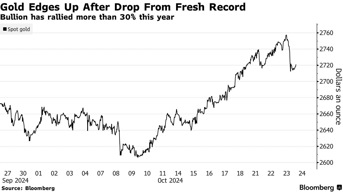 周四(10月24日)亚市早盘,黄金在2721美元维持弱势,金价自周三欧洲时段的2758美元高点暴力回调。分析师指出,由于美国国债收益率上升令金价承压且投资者在接近历史高位抛售,且黄金在技术上处于超买,导致金价创下 11 周以来最大单日跌幅并小幅反弹。 金价周三从历史高点回落,周三收盘下跌1.2%,目前交易价接近每盎司2720美元。 ![]() 技术指标显示近期涨势可能过于强劲,14天相对强弱指数显示黄金处于超买状态,因此金价出现回调。 由于市场押注美联储将采取谨慎的货币宽松政策,美国债券市场延续跌势,市场进一步看跌。 美债收益率上升和借贷成本上升往往会对黄金造成压力,因为黄金不支付利息。 ![]() (来源:Bloomberg) 周三早些时候,黄金价格创下每盎司2758.49美元的新高,美国总统竞选势均力敌,中东地缘政治风险刺激了避险需求。 市场也担心,美国11月总统选举可能会出现竞争,可能需要一段时间才能确定获胜者。 彭博社报道,美国11月总统大选活动进入最后几周,前总统特朗普(Donald Trump)和副总统哈里斯(Kamala Harris)的竞选极其激烈。 彭博新闻社/Morning Consult的民意调查显示,在7个摇摆州中,两位候选人的支持率在统计上不相上下。 在所有七个州,两位候选人势均力敌,潜在选民中两位候选人的支持率均为49%。本次民意调查的总体统计误差幅度为1个百分点。 这些战场州的微弱优势凸显了最后的广告、集会和上门竞选活动将如何决定谁能入主白宫。 投资者还担心以色列和伊朗之间的冲突可能升级为一场更广泛的战争。 尽管短线出现回调行情,但今年以来,黄金价格已上涨逾30%,屡创新高。 随着美联储转向降息,过去几个月黄金涨势愈演愈烈。 基金经理也助长了黄金价格上涨,对冲基金在最近几个交易日增加了黄金净多头仓位,投资者也增持了交易所交易基金(ETF)的持仓。 |