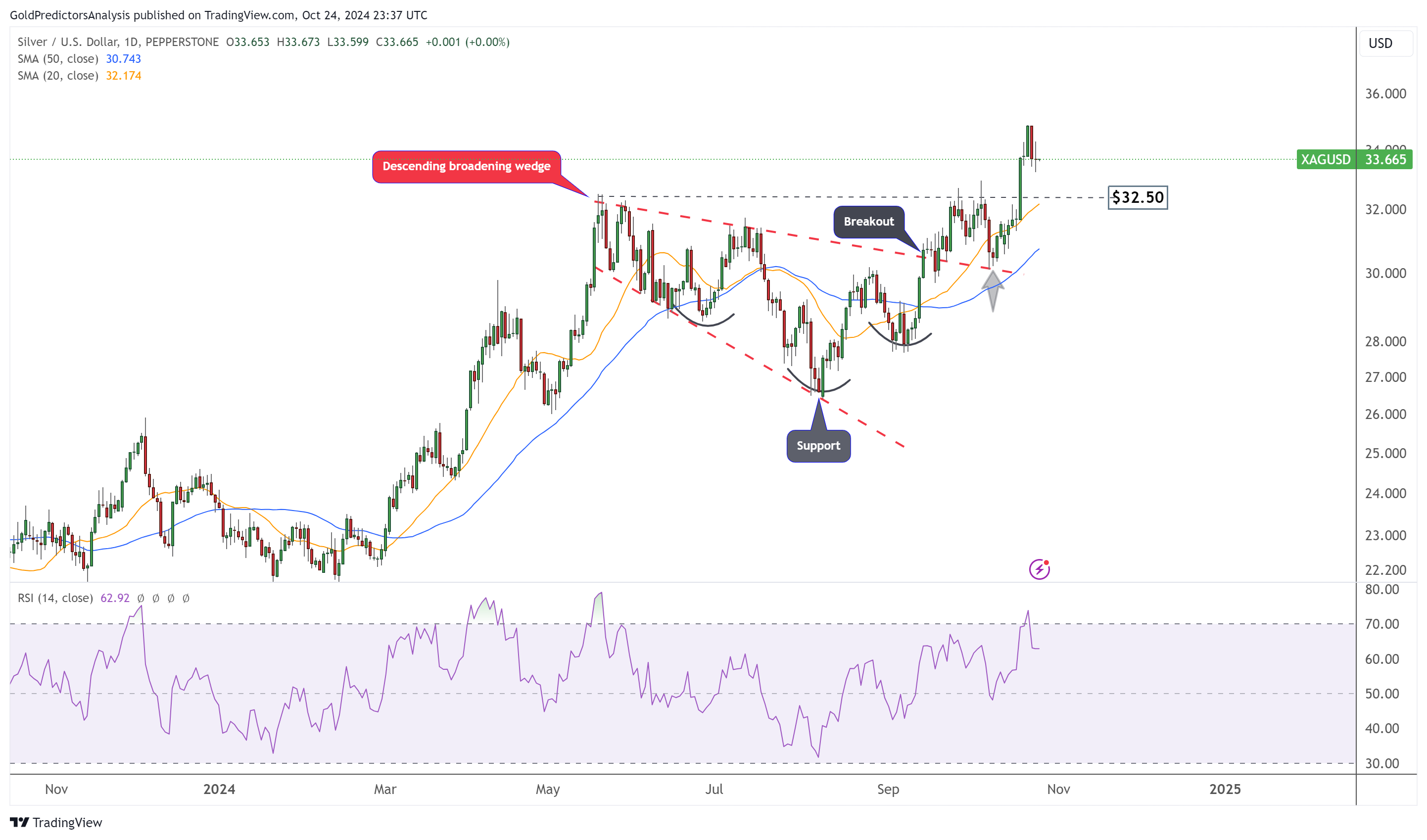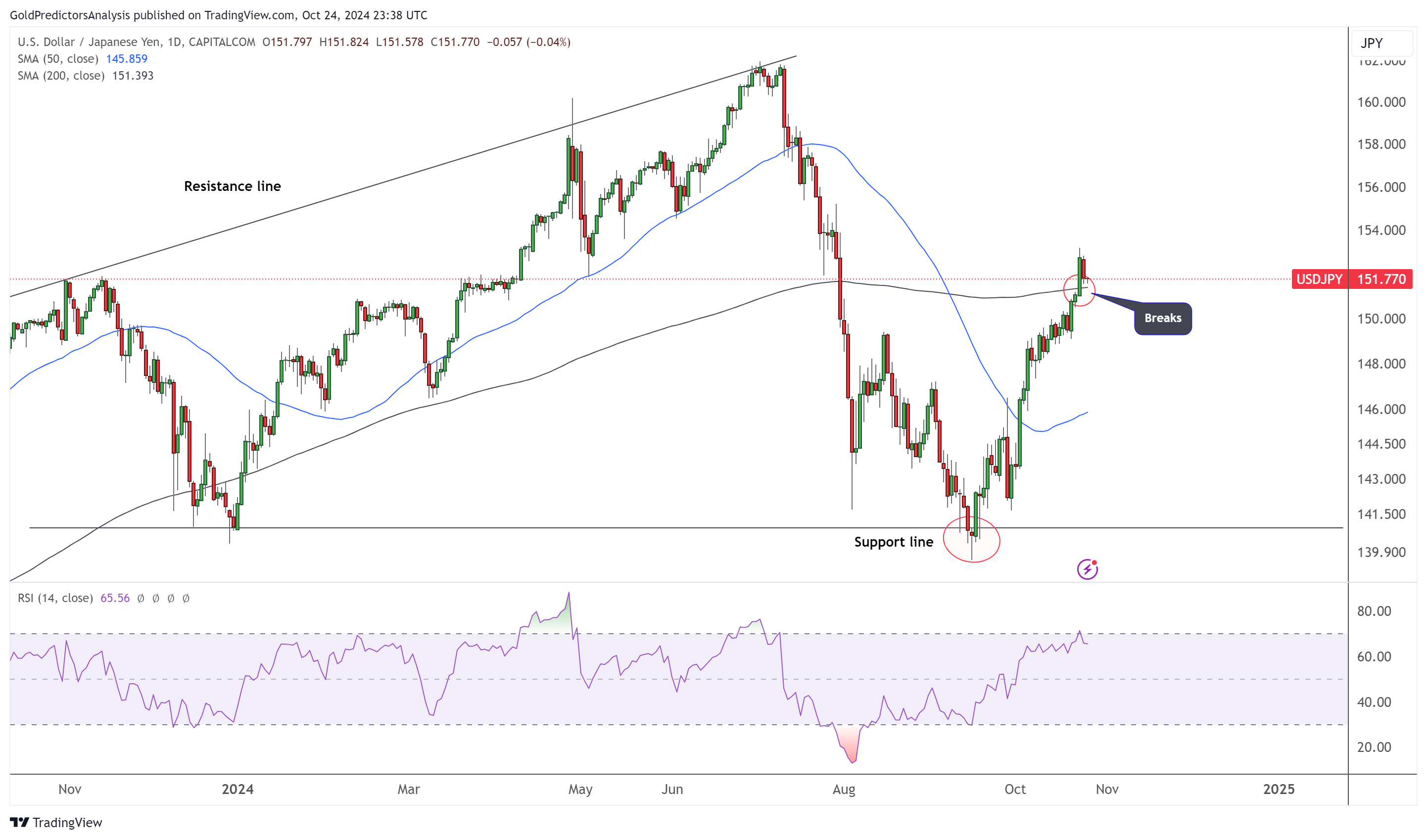 美国11月总统大选不确定性迫在眉睫,黄金正在创纪录水平上盘整,白银目前正准备进行回调,美元/日元突破200日均线后保持强势。