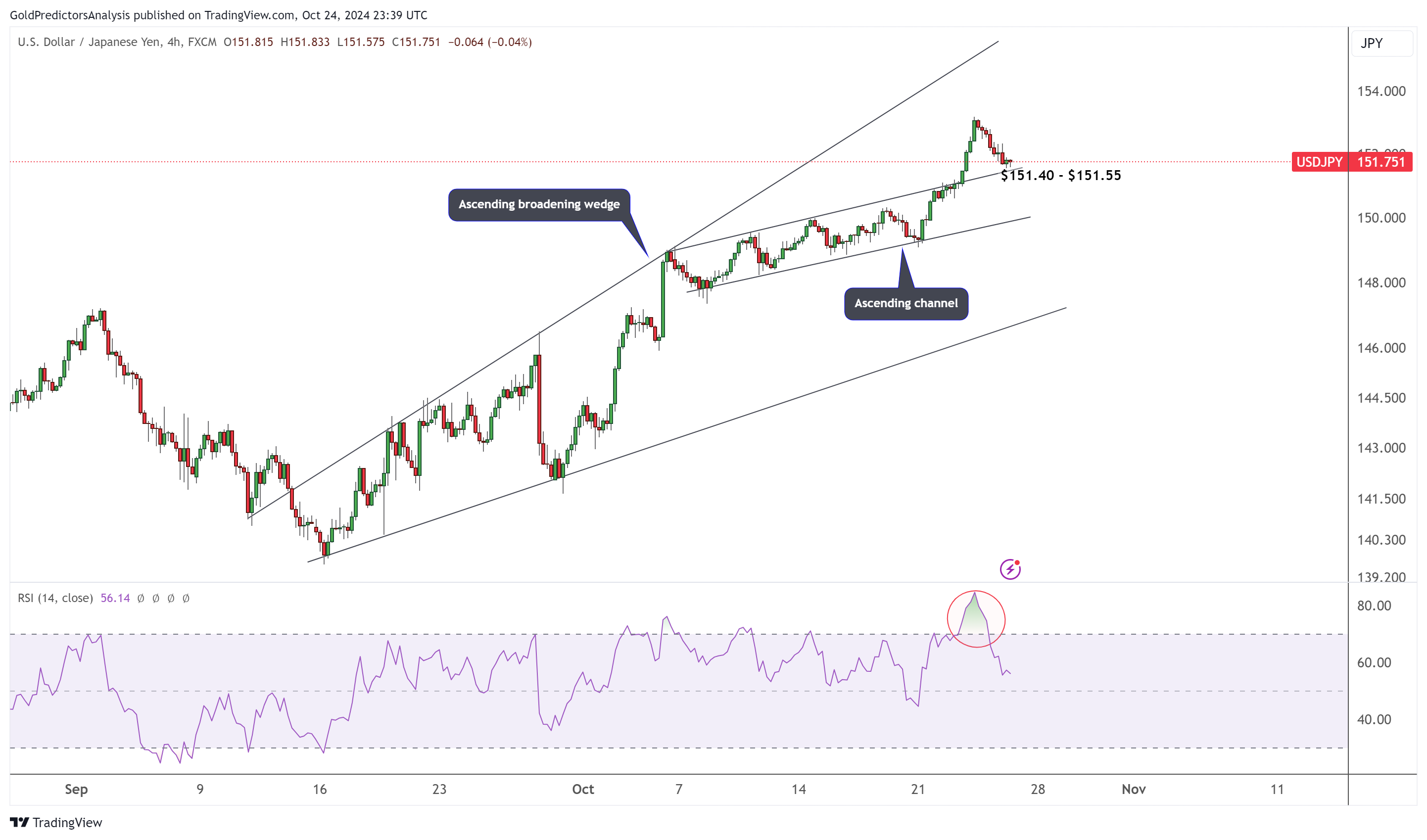 周五(10月25日),黄金价格在2733美元横摆徘徊,白银跌深后反弹至33.73美元,美元/日元落至151.93震荡。美国大选定于11月5日举行,市场不确定性显著。 从历史上看,黄金在政治和经济不稳定期间充当避险资产。对财政赤字、地缘紧张局势和货币宽松政策的担忧日益加剧,促使投资者使用黄金进行保护。最近,金价触及2760美元的小阻力区域并开始向下修正。 市场预计,采矿业黄金产量的增加和回收水平的提高将增加供应。此外,由于价格高企,珠宝和硬币对黄金的需求下降,从而减少了市场对实物的需求。另一方面,白银市场在突破32.50美元后保持强劲。这一突破使银价跌至34.80美元左右的阻力区。受技术创新和能源需求的推动,白银在工业领域的需求持续增长。 ![]() 尽管黄金有望从选举不确定性中受益,但不断升级的地缘危机助长了其看涨势头。另一方面,美元指数出现温和回调,推动美元/日元涨势下行。围绕美国大选的不确定性不断增加,增强了美元作为10月份避险资产的地位。与此同时,在行长植田和男发表略显鸽派的言论后,投资者对日本央行(BoJ)再次加息的可能性感到不确定。 以下是FXEmpire分析师Muhammad Umair最新技术展望: 黄金日线图 – 盘整 日线图显示,黄金从2760美元的强阻力位出现了关键反转。日线图上的红点趋势线标示了这一阻力位。价格在出现关键反转后盘整。此外,日线图上的RSI显示出看跌背离,表明可能出现疲软。 强劲支撑位位于20日移动平均线2680美元。不过,短期趋势仍看涨,任何价格回调都可能在这些水平得到支撑。美国大选的不确定性和不断升级的地缘政治危机可能会在短期内推高金价。 ![]() 黄金4小时图 – 上升趋势中的盘整 黄金的4小时图显示,黄金形成了一个上升通道,价格触及阻力区2760美元。该通道的上边界定义了这一阻力,表明价格可能在此水平附近波动。然而,突破2760美元可能会继续上涨至2780美元。 ![]() 白银日线图 – 下降扩展楔形 日线图显示,价格在32.50美元突破了下降扩展楔形模式和倒头肩模式。突破后,价格触及34.80美元的阻力位。目前,价格正在向突破区域32.50美元下行修正。20日SMA进一步加强了这一支撑,并形成了一个稳固的支撑区域。此次修正也受到RSI指示的超买状况的推动。 ![]() 白银4小时图 – 短期修正 4小时图显示,白银突破倒头肩形态并大幅上涨。然而,RSI指标显示银价处于极端超买状态,目前正朝着突破区域向下修正。尽管出现修正,但白银短期趋势仍看涨,32.50美元是强劲支撑位。 ![]() 美元/日元日线图 – 突破200 SMA 美元/日元日线图显示,该货币对从长期支撑位140-141美元强势反弹。价格在该支撑位之后继续走高。价格收于200 SMA上方,表明价格走势积极。此外,50 SMA呈上行趋势,表明价格走强。然而,RSI显示该货币对处于短期超买区域,表明价格可能出现回调。 ![]() 美元/日元4小时图 – 上升扩展楔形 4小时图显示,美元/日元从长期支撑位140美元反弹,形成上升扩大楔形形态。过去一个月,价格一直在该形态内波动。形态内还形成上升通道,表明强劲支撑位为151.40美元和151.55美元。由于最近的调整是由于4小时图上的高度超买状况,因此由于美国大选的不确定性,价格可能会继续波动。 ![]() |