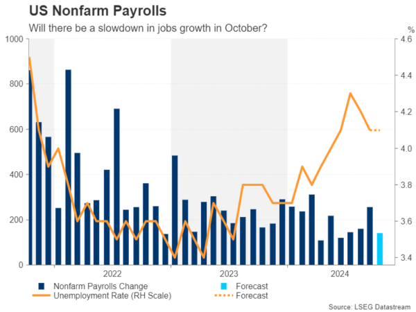 本周,受一系列正面的数据影响,美元连续第四周上涨。展望下周,投资者将迎来诸多风险事件,美国将公布非农就业报告、GDP数据和PCE通胀数据。日本央行将公布利率决议。欧元区GDP和CPI数据也备受期待。 所有人都在关注美国数据 美联储年9月出人意料地降息50个基点,降息幅度大于预期。如今,随着政策制定者再次发出鹰派言论,再次大幅降息的预期已经减弱。 自9月会议以来,包括CPI报告在内的美国经济指标一直走强,美联储官员警告称,短期内不太可能再次降息50个基点。从“硬着陆”的说法突然转变到“软着陆”,甚至可能是“不着陆”,刺激美国国债收益率的急剧逆转,这反过来又推高美元。 根据芝商所(CME)的“美联储观察”工具,市场预计美联储在11月会议上有95.6%的可能性会降息25个基点,而有4.4%的可能性会保持利率不变。一个月前,市场几乎完全预期至少降息25个基点,当时有57.4%的机率预计降息50个基点。 随着美联储11月政策决定的临近,下周的数据将成为美国经济实力和通胀进展方面的及时更新。 ![]() 美国GDP数据 下周二将公布的美国10月谘商会消费者信心指数和JOLTS 9月职位空缺将拉开序幕。但最重要的数据要到下周三公布第三季度GDP初值时才会发布。 预计美国经济第三季度的年化增长率为3.0%,与第二季度持平。这不仅是高于平均水平的增长,而且亚特兰大联储的GDPNow模型估计的增长率为3.4%,因此意外上升的可能性比意外下降的可能性更大。 下周三将公布的其他数据包括ADP民间就业报告和成屋签约销售数据。ADP报告将提供对就业市场的初步了解。 美国CPE通胀数据 衡量通胀的CPI和PCE指标都显示,总体通胀率和核心通胀率存在差异。核心个人消费支出(PCE)物价指数是美联储在决策中最看重的指标,尽管整体PCE同比增幅下降至2.2%,但该指数8月份同比增幅攀升至2.7%。这两项数据很可能在9月份保持不变或略有下降。因此,通胀数据可能对美联储或投资者没有特别的帮助。 ![]() 不过,将于同一天公布的个人收入和消费数据将为美联储决策者提供更多线索,而10月挑战者裁员和第三季度劳工成本指数也将受到关注。 非农就业报告可能会起到决定性作用 最后,下周的重头戏——10月份非农就业报告——将在下周五出炉。在9月份稳定增长25.4万之后,预计美国劳动力市场在10月份创造14万个新工作岗位,这标志着就业岗位增幅明显放缓。尽管如此,失业率预计将保持在4.1%,而平均时薪环比增幅预计将从0.4%略微放缓至0.3%。 ![]() 同样重要的还有ISM制造业PMI,预计10月PMI将从47.2升至47.6。由于美联储现在更担心的是就业市场,而不是通胀,疲软的就业数据可能会让美联储的基调回到更鸽派的水平。 美元能否延续反弹? 追踪美元兑六种主要货币的美元指数(DXY)本周累计上涨0.83%,为连续第四周走高。 麦格理(Macquarie)全球外汇与利率策略师Thierry Wizman表示:“假如美国的经济数据没有如此强劲,尤其是相对于其它国家,那么美联储和其它央行的政策趋势就不会出现如此明显的差异,呈现相反方向,至少在语气和措辞上。这正是推动美元走强的原因。” Corpay首席市场策略师Karl Schamotta表示:“我们对美国的经济预期进行了一次大规模的重新调整,这个过程似乎已大致完成,美联储的政策轨迹看起来更加合理,美国与其它主要经济体之间的利率差异也在此稳定下来。” 知名机构XM称,任何表明美国经济正在降温的迹象都可能推高市场对未来几次会议连续降息的押注。然而,如果经济增长保持强劲,而且更明显的是,PCE通胀显示出某种粘性,那么降息押注可能会受到进一步打击。 目前,市场只完全消化在今年剩余时间内仅额外降息25个基点的预期。如果11月的降息开始出现疑问,美元可能会攀升至新高,但美国股市可能会面临抛售压力。 然而,对于美国股市来说,如果微软、苹果和亚马逊的业绩不令人失望,繁忙的财报周可能会令市场保持积极的势头。 日本央行决议 日本央行在下周会议上可能维持利率不变,同时也可能发出更少鸽派的政策信号,这是由于美国经济衰退的担忧减弱,并且有必要防止投机者过度压低日元。 美元/日元本周收盘大涨281点,涨幅1.88%,报152.31。 XM指出,尽管日本央行政策制定者明确打算继续货币政策正常化并进一步提高利率,但通胀似乎正稳定在日本央行2.0%的目标附近,这降低了进一步收紧政策的必要性。日本央行行长植田和和其他董事会成员的最新评论表明,日本央行下周四宣布10月决定时不会加息。 ![]() 据彭博报道,植田和男称,日本央行还有时间考虑下一步政策举措,这表明即使日元跌至近三个月低点,日本央行下周也不会加息。他在华盛顿与二十国集团(G20)领导人会晤后对记者表示:“我相信我们(日本央行)有足够时间来制定政策决定。” 但日本央行最新的展望报告将对通胀和经济增长做出一系列新的预测,对于12月或2025年前几个月加息的可能性,应该会提供重要线索。 XM称,在短期内没有任何加息的迹象的情况下,日元兑美元可能会继续挣扎。然而,日元再次走软只会刺激政策制定者尽早加息,而这是投资者可能忽视的风险。 此外,日本9月工业产出和零售销售初值也将于下周四公布。 欧元等待GDP和CPI初值 欧元/美元的双顶形态并未令技术分析爱好者失望,该货币对近期触及16周低点,跌破1.08。下周发布的数据不太可能对欧元多头有多大帮助。 