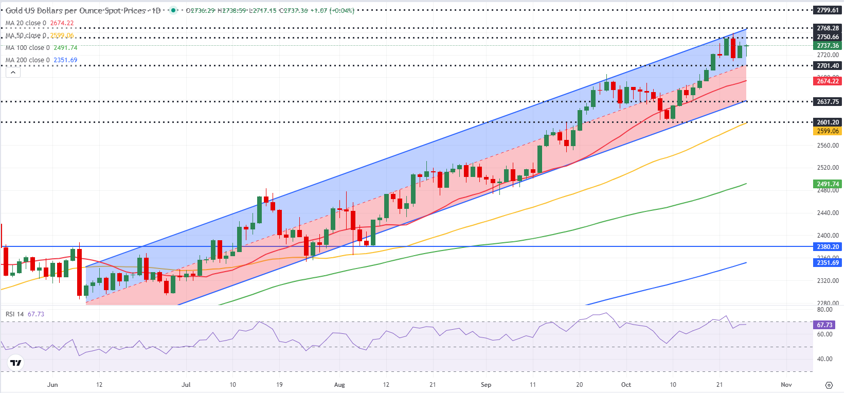 尽管美元走强,但本周现货黄金仍然大涨近1%,并刷新纪录高位。FXStreet分析师Eren Sengezer周五(10月25日)撰文,对金价下周走势进行分析和预测。 Sengezer指出,技术面前景表明,黄金短期内看涨倾向保持完好。下周的经济日历将公布可能影响黄金走势的关键美国数据。 由于中东紧张局势和美国大选的紧张情绪支撑,黄金周五走强。本周黄金连续第三周上涨。 现货黄金周五收盘上涨11.62美元,涨幅0.42%,报2747.38美元/盎司。 本周,现货黄金收盘上涨26.00美元,涨幅达到0.96%。周三黄金价格创下2758.45美元/盎司的纪录新高。 ![]() 下周美国非农等重磅数据驾到 Sengezer写道,黄金延续上行趋势,达到2750美元/盎司上方的历史新高。美国经济日历将公布第三季度国内生产总值(GDP)数据和10月份劳动力市场数据,这可能会对下周的黄金价格产生重大影响。 美国经济分析局(BEA)将于下周三公布第三季度国内生产总值(GD)年化增长初值。投资者预计,美国GDP在这一时期将增长3%,与第二季度的增速持平。Sengezer指出,如果该数据高于市场预期,直接反应可能是提振美元,并导致金价走低。另一方面,令人失望的GDP数据(在1%到2%之间),可能会损害美元。 下周四,美国经济分析局将公布9月份个人消费支出(PCE)物价指数,这是美联储偏爱的通胀指标。由于GDP报告还将提供季度PCE物价指数数据,月度数据不太可能引发市场反应。 美国劳工统计局(BLS)将于下周五公布10月份的劳动力市场数据。9月份,非农就业人数(NFP)增加25.4万人。这一数据远远超出市场预期的14万,导致市场对美联储11月降息50个基点的预期降温。 根据CME的“美联储观察工具”,市场几乎完全消化美联储在即将召开的会议上降息25个基点的预期,并认为美联储在今年年底前降息50个基点的可能性约为70%。Sengezer称,如果非农就业数据出现明显的下行意外,市场就会重新考虑在11月或12月大幅降息的可能性。如果非农就业数据达到或低于10万,美元可能会面临沉重的抛售压力,并为黄金在下周末前的反弹打开大门。 Sengezer补充道,相反,如果非农就业数据在18万至22万之间,则可能被视为“足够好”的数据,美联储可能会选择在年底前两次降息25个基点。最后,如果非农就业数据接近30万或更高,投资者可能会怀疑12月是否会降息。在这种情况下,黄金可能会面临强大的看空压力。 黄金下周技术前景 Sengezer指出,从黄金日线图来看,相对强弱指数(RSI)在本周稍早升至70上方后,回落向60,暗示在黄金修正超买状况后,看涨倾向保持完好。此外,金价仍处于6月以来的上行通道内。 在下行方面,Sengezer称,金价首个支撑可能在2700美元/盎司,即上升通道的中点所在。若跌破这一支撑,金价可能在2675美元/盎司(20日简单移动平均线)和2635美元/盎司(上升通道的下沿)受到支撑。 ![]() (现货黄金日线图 ) Sengezer补充道,在上行方面,金价短期阻力位似乎在2750美元/盎司处形成。若攻克该位,金价接下来的阻力位于2770美元/盎司(上行通道的上沿)和2800美元/盎司(整数关口)。 |
