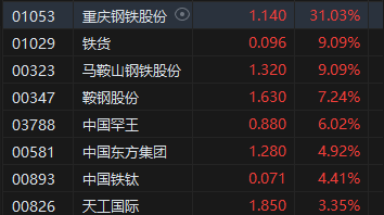 10月28日,恒生指数上涨,其中恒生科技指数和国企指数也有所上涨,科网股大多数上涨,而钢铁股涨幅居前,重庆钢铁股份涨超31%。另外,汽车股和内房股也普遍涨势活跃。小鹏汽车涨超7%,旭辉控股涨超14%。此外,中国钢 ...
