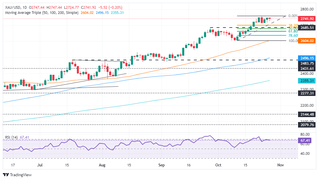 周一(10月28日),现货黄金大幅跳空低开,亚市早盘,金价一度逼近2725美元/盎司;不过,金价收复日内多数失地,当日收盘金价回升至2740美元/盎司上方。 截至周一收盘,现货黄金报2742.05美元/盎司,日内跌幅近0.2%;金价盘中最低跌至2724.64美元/盎司。 ![]() FXStreet分析师Christian Borjon Valencia指出,受美国国债收益率上升的拖累,黄金交易价格周一小幅走低。美国10年期国债收益率继续攀升,上升3个基点,至4.272%。 不过,Valencia指出,政治和地缘政治紧张局势仍在持续。这限制金价的跌势。 在以色列向伊朗的几个军事目标发射导弹,避开了能源和核设施之后,地缘政治在上周末再次成为焦点。 伊朗外交部发言人巴盖伊(Esmaeil Baghaei)当地时间周一表示,德黑兰将“使用所有可用的工具”对以色列周末针对伊朗军事目标发动的袭击作出回应。 伊朗此前曾故意淡化以色列袭击所造成的损失,强调伊朗的防空系统应处和拦截有效,因此只是遭受了“有限”的损失。 巴盖伊说:“(伊朗)将使用所有可用的工具对犹太复国主义政权作出明确而有效的回应。” 巴盖伊还表示,伊朗反应的性质取决于以色列袭击的性质,但是他没有作出更多的解释,也没有透露更多的细节。 伊朗最高领袖梅内伊上周日首次对以色列袭击伊朗一事公开发声,强调以色列的袭击既“不应被夸大”,也“不应被淡化”。 Valencia表示,与此同时,交易员也在关注11月5日的美国大选。根据民调网站FiveThirtyEight的数据,特朗普赢得美国大选的机会已经增加到52%,而副总统哈里斯的胜算为48%。尽管如此,哈里斯在大多数全国民意调查中仍然略微领先。 经济数据方面,周二,美国将公布9月份JOLTS职位空缺报告,预计将从804万下降到799万。与此同时,谘商会将公布美国10月份的消费者信心指数,该指数可能从98.7上升至99.3。 本周晚些时候,交易员还将迎来美国第三季度GDP、PCE物价指数和非农就业报告,这些数据可能会影响美联储的政策前景。 如何交易黄金? Valencia指出,金价上行趋势保持完好,在纪录高位附近没有出现反转模式,但已在2700-2750美元/盎司区域内盘整。若金价突破区间顶部,金价将立即瞄准2758美元/盎司的历史高点。一旦突破,下一目标将是2775美元/盎司区域,然后挑战2800美元/盎司。 ![]() (现货黄金日线图 ) 另一方面,Valencia补充道,如果卖家进场并将金价推低至2700美元/盎司以下,那么第一个支撑位将是9月26日的波动高点,该高点转为支撑位2685美元/盎司;随后是50日简单移动平均线(SMA)支撑2603美元/盎司。 Valencia称,势头表明,相对强弱指数(RSI)仍然看涨,但有所走低,黄金可能会盘整。在RSI清除最近的峰值之前,黄金本有机会创出历史新高。否则,要小心金价回调。 |
