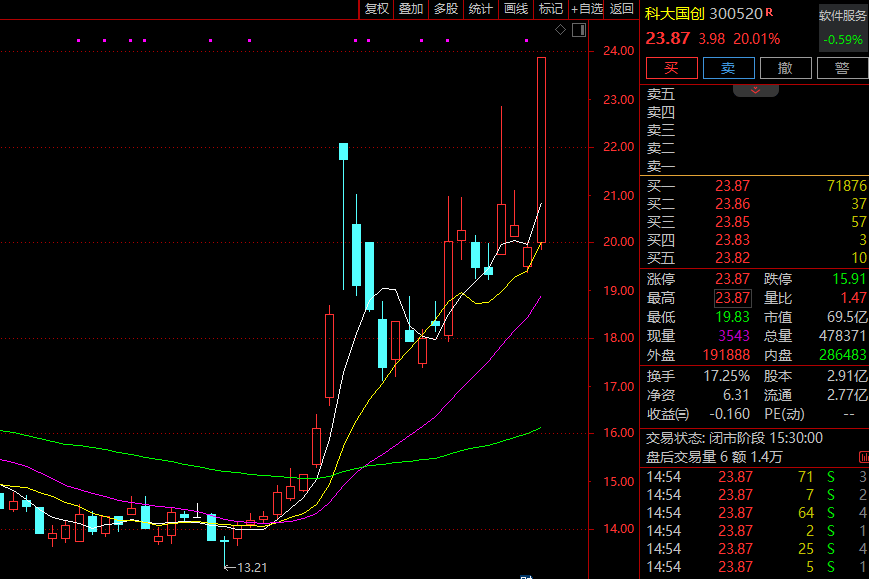 今日,A股冲高回落,上证指数跌逾1%,失守3300点,创业板指跌超2%,也跌破2200点整数关口,上证50指数2700点得而复失,北证50指数则继续大涨3.68%。市场超4200只个股下跌,成交放大至2.11万亿元。 盘面上,智谱AI、多元金融、IT设备、信息安全等板块涨幅居前,次新股、NMN概念、BC电池、减肥药等板块跌幅居前。 Wind实时监测数据显示,计算机获得主力资金逾140亿元主力资金净流入,电子获得逾113亿元净流入,商贸零售、家用电器等均获得超30亿元净流入,通信则连续12个交易日获得净流入,机械设备连续10日获得净流入。医药生物、电力设备、基础化工等主力资金均净流出超20亿元。 今日多只高位人气股尾盘跳水,此前27个交易日24涨停的双成药业(002693)再次逼近涨停价,但在距收盘不到半小时,突然直线跳水,盘中一度翻绿,至收盘以涨2.54%报收,成交51.7亿元,换手率高达32.69%。 双成药业近来最少发布超10条风险提示公告,双成药业表示,公司正在筹划重大资产重组事项。本次交易的审计、评估工作尚未完成,本次交易的具体交易价格尚未确定。本次交易尚需公司董事会再次审议及公司股东大会审议批准,并经相关监管机构批准后方可正式实施,能否通过审批尚存在一定不确定性。敬请广大投资者理性投资,注意投资风险。 从龙虎榜来看,交易活跃的均为营业部游资,10月28日龙虎榜买入前五席合计净买入1.79亿元,卖出前五席合计净卖出5.37亿元。 恒银科技涨停开盘,全天大部分时间都封死涨停,但到临近收盘最后约5分钟的时候,突然打开涨停,瞬间杀至跌停,走出天地板行情。银之杰(300085)、文一科技(600520)、新华传媒(600825)等尾盘也纷纷大幅跳水。 展望后市,海通证券(600837)称,我国处于国企新一轮改革深化周期,多项政策会议强调央国企要围绕新技术开展更多高质量并购,腾挪更多资源发展战略性新兴产业、推动科技创新,从而促进央国企提高核心竞争力。因此投资者可以关注央国企上市公司,尤其是在战略性新兴产业领域具有并购重组预期的企业。 湘财证券表示,市场目前处于新“国九条”行情+类“四万亿”投资的重叠趋势中。随着互换便利的落地,长期资金不断入市,大概率推动市场加速目前的震荡整理过程。预期会有二次上升过程,达2015 年形成的高位附近。行业方面建议关注与新质生产力息息相关的电子(元件)、新材料;其他基本面持续好转的上游化学原料、养殖业、贵金属等。 热点方面,信息安全板块今日放量突破10月8日高点,创1年多来新高。科大国创(300520)、豆神教育20%涨停,川大智胜(002253)、视声智能、榕基软件(002474)、中科曙光(603019)等超10股涨停或涨超10%。 随着5G、云计算、大数据、物联网、AI人工智能等新技术的快速发展和普及应用,信息数据开始成为驱动经济社会发展的重要驱动力,信息安全日益受到各方关注。 Gartner预计到2024年,终端用户在信息安全方面的支出将增长至1840亿美元,到2028年,市场将达到2940亿美元,复合年增长率为11.7%。 中信证券指出,近年来,信息安全行业持续火热,平台化成为行业发展趋势,平台型安全厂商市值增长迅猛。预计平台化趋势将重塑安全行业格局,市场将从分散走向集中。利好厂商包括软硬一体化平台厂商以及云原生安全平台厂商。 本文首发于微信公众号:e公司。文章内容属作者个人观点,不代表西瓜财经立场。投资者据此操作,风险请自担。 (责任编辑:宋政 HN002)