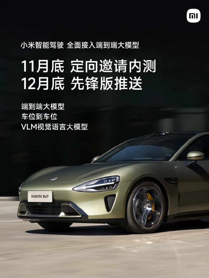 凤凰网科技讯 10月29日,在今晚举行的小米新品发布会上,雷军公布小米智能驾驶新进展:城市NOA全国都能开,10月30日将开启全量推送。小米智能驾驶搭载端到端大模型与视觉语言大模型,驾驶风格更拟人,实现“车位到车位,上车就能用”预计11月底开启定向邀请内测,12月底开启先锋版推送。 (责任编辑:张晓波 )