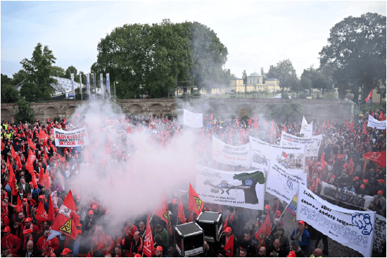 全球需求下滑,中国市场承压,电气转型不利,成本居高不下,德国老国企大众汽车终于撑不住了。 本土首次关厂裁员 在昨天大众汽车集团位于德国沃尔夫斯堡的总部大会上,大众汽车集团的员工工会主席丹尼埃拉・卡瓦罗(Daniela Cavallo)宣布了一个令人震惊的消息。她负责代表员工,与大众汽车管理层进行劳资谈判。 她告知员工,大众汽车集团已经决定,在德国至少关闭三家工厂,同时对其他工厂进行大幅裁员,可能会有数万人因此失业。即便那些没有被裁的员工,也需要接受降薪10%。大众汽车在德国拥有10家工厂。 此外,大众汽车还计划剥离非核心业务,减少车型数量,下调汽车产量,以及削减生产线。看起来这家德国国民汽车巨头即将经历一场前所未有的巨变,而影响则会波及德国经济的各行各业。实际上,大众汽车上个月就已经打过了预防针,提前暗示可能要关闭德国工厂。 按年销量计算,大众汽车是全球第二大汽车巨头,去年销量超过830万辆,仅次于日本的丰田汽车(1045万辆)。除了大众汽车品牌,大众汽车集团旗下还包括了奥迪和保时捷两大豪华品牌,以及宾利、斯科达、兰博基尼、布加迪等海外品牌。 大众汽车要在德国裁员关厂,这绝对是个令人震惊的消息。因为在这家汽车巨头将近九十年的历史上,从来没有在本土关厂的经历。而大众汽车的裁员关厂计划,也会给本就陷入停滞的德国经济带来巨大的冲击。 废除雇佣保护协议 大众汽车集团随后发表声明称,管理层会在未来的劳资协议中提出具体的削减劳动力成本的计划;他们从2023年中就开始与工会谈判,并在今年夏天明确告知,“经济状况恶化需要公司采取根本性重组”。 大众汽车管理委员会委员、人力资源负责人加纳・基里安(Gunnar Kilian)承认了关闭工厂的计划。他表示,“目前的情况很严重,劳资谈判的责任巨大。如果不采取全面措施,恢复公司的竞争力,我们将无法承担对未来的大量投资。” 大众汽车乘用车部门负责人舍夫(Thomas Schafer)解释称,大众汽车的德国工厂劳动力成本明显高于行业标准,公司必须削减目前的业务结构。因为产品需求萎缩,市场竞争加剧,而德国本土的造车成本过高。 大众汽车提到,占据公司将近四分之一份额的欧洲市场,在过去四年市场规模减少了200万辆车,与此同时,公司的能源、人力以及原材料价格却在增长。“整个行业都在停滞,而且在可预见的未来无法复苏。” 大众汽车表示,为了恢复竞争力,必须废除过去三十年的雇佣保护协议,节省下100亿欧元的成本。雇佣保护协议是大众汽车与工会达成的长期就业保护协议,限制了大众汽车进行裁员以及降薪的能力。 工会原本要求加薪 但是,关厂裁员对工会来说也是难以承受的巨大心理冲击。因为他们正在与大众汽车商谈新的劳资协议,原本还想要求加薪7%。在工会看来,考虑到德国过去两年的通货膨胀,这个涨薪幅度是合理的。德国政府数据显示,去年德国通货膨胀率为5.9%,但是食物价格上涨了12.4%。 但现在工会却得到了大众要进行战略紧缩的通知。不仅加薪成为了泡影,大众汽车员工现在要担心的是能否保住自己的工作,数万人都会被迫失业。即便幸运没有被裁员的工人,也要面临降薪10%的结果。 对于工人们来说,这是一个最坏的结果。工会已经威胁要取消原本定于周三进行的劳资谈判,更不排除随后进行大规模罢工抗议的可能性。如果发生这样的情况,那无疑是大众汽车与工会的双输,大众汽车本就惨淡的财务状况可能会更加雪上加霜。 与美国工会“摊牌式罢工”不同,德国工会一直有“警告性罢工”的传统,即在劳资谈判期间先进行小规模罢工,以施压企业。德国汽车工人工会IG Metall周二开始罢工,数千名工人周二停止工作要求涨薪,此次罢工主要涉及电气工程以及金属行业公司,涉及到宝马、梅赛德斯奔驰以及大众汽车旗下的保时捷工厂。 现在大众汽车关闭工厂和大举裁员,无疑会给本就陷入停滞的德国经济带来更大的冲击。这不仅是一家企业的战略调整计划,也是关系到德国经济民生的政治问题,迫使德国政府不得不介入。 德国经济支柱企业 尽管德国是汽车大国,拥有宝马汽车、梅赛德斯奔驰、大众汽车等诸多知名车企,但在德国本土,没有哪家汽车公司能像大众汽车这样,对德国经济拥有举足轻重的地位。打个比方,大众汽车就像是德国的老国企。 汽车是德国经济的支柱产业。2022年德国汽车产业总产值4100亿欧元,在德国国内生产总值的占比在5%左右,是德国最重要的经济部门;汽车也是德国最重要的出口产业,占据了德国出口总额的15%。 大众汽车的名字(Volkswagen)就是德语里面的人民+汽车。在上世纪三十年代创办伊始,这家公司就是为了制造德国普通民众买得起的汽车。二战结束之后,大众汽车在全球汽车行业的崛起,更与德国经济重建与崛起密不可分。不夸张的说,大众汽车的工厂和员工直接撑起了德国很多地区的经济。 大众汽车在德国有多巨无霸?2022年大众汽车集团总营收将近2800亿欧元,这包括所有品牌的的汽车以及服务相关收入。同年大众出口总额1800亿欧元,是德国最大的出口企业。相比走豪华产品路线的宝马奔驰,大众汽车从豪华车到中端车到入门车,提供了各个价位的所有产品选择。 整个德国汽车产业雇佣了超过80万名员工,间接创造的就业工作更是不计其数。而大众汽车是德国最大的雇主,在沃