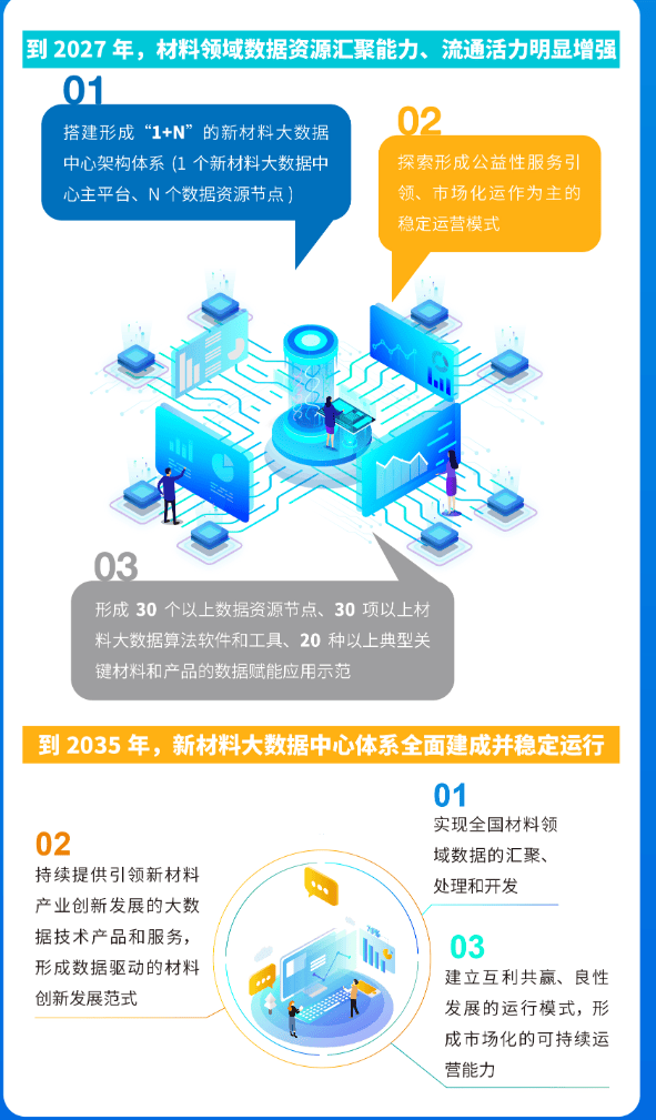 10月30日,工业和信息化部、财政部、国家数据局联合印发《新材料大数据中心总体建设方案》(以下简称《方案》)。 《方案》指出,新材料是战略性、基础性产业,也是高技术竞争的关键领域。数据作为新型生产要素,是关乎新材料技术创新、产业高质量发展的战略资源。《方案》的制定旨在充分发挥大数据、人工智能对新材料产业的技术支撑作用,支持新材料大数据中心建设,培育材料研发与应用的全新发展模式。 《方案》提出的总体要求是,到2027年,搭建形成“1+N”(1个中心主平台、N个数据资源节点)的新材料大数据中心架构体系,形成30个以上数据资源节点、30项以上材料大数据算法软件和工具、20种以上典型关键材料和产品的数据赋能应用示范;到2035年,新材料大数据中心体系全面建成并稳定运行,数据规模进入国际第一梯队。 《方案》提出的总体要求 图片来源:工信部 旨在破解材料数据的“孤岛化”难题 党的二十大报告提出,构建新材料等一批新的增长引擎。党的二十届三中全会审议通过的《中共中央关于进一步全面深化改革 推进中国式现代化的决定》明确提出,“建设和运营国家数据基础设施,促进数据共享”。 工信部有关部门负责人就《方案》进行解读时表示,近年来,我国新材料产业蓬勃发展,布局建设一批材料数据平台,积累了大量的材料科学、技术、生产、应用等数据,但数据作为新要素流转共享不通畅、开发利用不深入、潜值释放不充分等问题突出,材料数据“孤岛化”现象严重,难以充分发挥数据基础资源和生成式人工智能赋能作用,亟需提高数据服务新材料产业发展的能力。 基于此,制定本《方案》是为了贯彻落实党中央、国务院决策部署,发挥大数据对新材料产业的重要支撑作用,构建材料研发与应用的新模式,培育新质生产力。 北京大学大数据分析与应用技术国家工程实验室特聘副研究员王娟接受《每日经济新闻》记者电话采访时表示,《方案》的内核就是要支持行业内头部企业、科研单位或者高校等有数据集的单位把数据开发、共享出来,让其他有关联业务的机构能够获取、使用数据,从而发挥出数据的价值。 王娟对记者表示,在新材料领域,以高校为例,比如做化工材料、新材料的课题组,他们做某个材料就会形成自己的数据集,在实验过程中会产生海量数据,数据配比成功后就可以发论文、申请专利,然后相关的成果可以转让给相关的工业企业。 王娟强调,实际上这是一种小作坊式的科研模式,在这个模式下大家可能并不互联互通,有不同的高校或企业都在做相关的研发,做的方向和目标都基本一致,这样实际上就会造成实验时间和成本的巨大浪费。 建设大数据中心就相当于做有组织的科研,由相关部门加以推动,把行业这种共性的实验数据、加工数据等构建成一个数据集,这样后来者要在这个领域去做创新和研究时,可以站在别人数据的肩膀上,再去做下一步的科学研究或研发,这样就可以节约整个社会的探索和创新成本。 聚焦先进钢铁材料等领域建设数据资源节点 《方案》提出,新材料大数据中心是促进新材料产业创新发展的新型研发基础设施,充分发挥产业数据规模优势和应用优势,通过平台、标准、技术、市场的引导,逐步实现科技、产业等材料数据的融通和应用。 在搭建新材料大数据中心架构体系方面,《方案》提出要建立中心主平台,布局数据资源节点等任务。 其中,在建立中心主平台方面,《方案》提出,统筹建门户、出标准、定规则。负责建设数据存储、灾备、交互服务器集群等硬件基础设施,以及数据管理发布、共享交互、应用服务、安全保障等系统;建立统一的数据标准规范体系、分类分级的数据安全保障体系;依场景构建无偿共享和有偿使用相结合的数据管理共享机制等。 在布局数据资源节点方面,《方案》提出,依托优势企业、科研院所、高校、新材料重点平台等各类创新载体,负责采数据、用数据、保质量。参照《工业战略性新兴产业分类目录(2023)》新材料产业分类,聚焦先进钢铁材料、先进有色金属材料、先进石化化工材料、先进无机非金属材料、高性能纤维及制品和复合材料、前沿材料等6个材料领域,以及1个材料综合应用领域,分科技、产业和计算三类,支持建设数据资源节点。 数据资源节点主要开展重点行业、领域的材料设计、研制、应用和专用计算等数据采集积累、质量控制和可靠性评价,数据内容和指标体系构建;按照统一数据标准体系和管理共享机制,与中心主平台联结,开展数据流通、共享、交换;开展材料数据增值应用的典型场景探索和个性化数据产品开发。 其中,每个领域遴选确定1到2个数据资源骨干节点,先行先试、率先联结,无偿提供具有公共属性的数据产品和服务,推动形成数据资源汇聚、共享、利用的“小核心”,充分发挥引领带动作用。 在王娟看来,中心主平台相当于建立一个大的平台,N个数据资源节点可以看作是N个分散的点或者枢纽中心,可以通过接口与主平台上的数据互联互通。其目的就是让数据流通起来,更好地发挥数据要素的价值。 每日经济新闻 (责任编辑:董萍萍 )