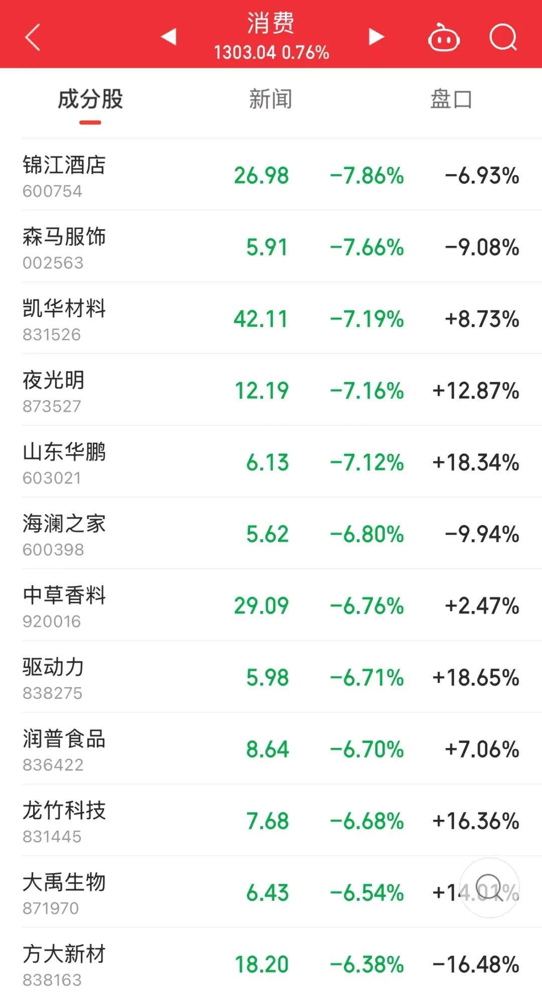 本文提到,随着三季报的披露,许多龙头公司的业绩出现下滑,导致大消费板块在今天早盘跌多涨少,其中包括家电、美容护理、农林牧渔等板块。部分龙头股的跌势明显,例如白酒板块的洋河股份、森马服饰等纺织服饰龙头, ...