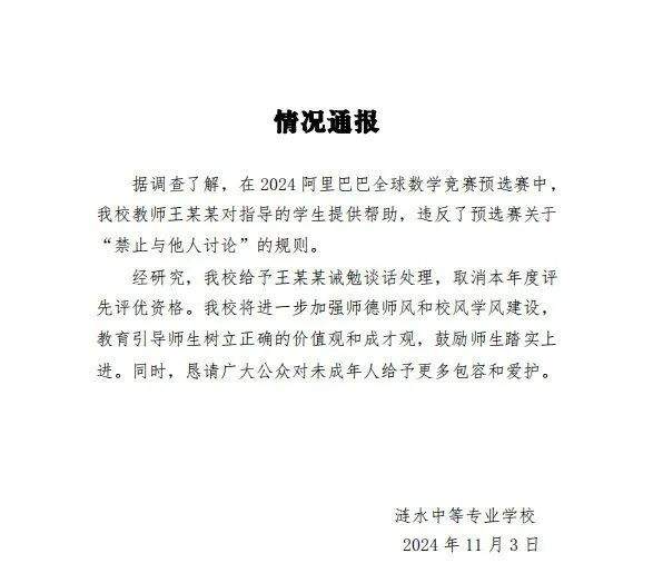 导语: 据凤凰网科技了解,在初赛结果出来后,达摩院方面就以不能影响选手比赛为由,将选手“隐藏”了起来。外界所能看到的,只是达摩院为姜萍做的单方面宣传内容。 凤凰网科技 出品 作者|董雨晴 17岁的姜萍迎来了她人生昏暗的一天。 11月3日,阿里巴巴全球数学竞赛组委会发布了一则情况说明,宣布阿里巴巴全球数学竞赛获奖名单正式发布,共有86名选手获奖,其中金奖5名,银奖10名,铜奖20名,优秀奖51名。 “我们对各位获奖选手表示祝贺,并衷心感谢大家对本届竞赛的关注和支持。在本届竞赛中,江苏省涟水中等专业学校教师王某某和其指导的学生入围决赛,引发社会关注。根据决赛阅卷结果,二人未获奖”。 在这则通报中,姜萍的名字被隐去,成为涟水中等专业学校教师王某某的学生,更为关键的是,这则通报有一个严肃的指控――王某某在预选赛中对其指导的学生提供帮助,违反了预选赛关于“禁止与他人讨论”的规则。 也就是说,从6月13日预选比赛出结果,至今143天的时间里,达摩院作为该项赛事的主办方,均未对赛事的公正性进行过任何的核实与验证。 在初赛结果公布时,就有媒体报道称,“姜萍是该比赛举办以来,首位闯进决赛的中专在读生”,足以见得情况多么特殊。 凤凰网科技在6月14日,即大赛预选赛结果出来的第二天就与达摩院方面取得了联系,就“大赛主办方是何时注意到姜萍的”发去询问,当时,达摩院方面回应凤凰网科技明确表示,“名单公布时”。 且达摩院方面明确知道像姜萍这样的选手晋级情况非常少见,大多数同类型选手都是被淘汰,“阿里数赛每年吸引了非常多的大众选手参赛,他们绝大多数人都止步于初赛,只有非常少数能挺进决赛。因为强手如林,全球数万人参赛,只有七八百人能进入决赛,晋级率不到5%”。 在这样一个特殊的情况下,大赛主办方没有首先去调查出线者成绩的真实性与严肃性,而是做了什么呢? 阿里达摩院自己紧锣密鼓地制作了一组“物料”。 几乎是在初赛结果正式发布之前,达摩院就派人采访了姜萍,并制作了宣传视频。视频最一开始的画面正是姜萍得知自己获得第12名时的惊讶反应。 与此同时,大赛主办方方面就替姜萍和她的老师拒绝了所有外界媒体的采访,理由是“不要影响选手比赛”,在没能真正接触选手本人的情况下,铺天盖地地来自第三方的自发性报道雪花一般飘下,让姜萍迅速跻身为“顶流”,也让事件离真相越来越遥远。 在吸纳了巨大的关注度后,更多人涌入了达摩院对姜萍的采访短片中,却发现,这个天才少女存在一些专业上不合理的地方。 有不少数学相关专业人士更是直言,“宣传视频中错误百出”,包括黑板上的数学公式的错误,以及姜萍自己书写时的错误。 如网友@间宫羽Dsama就详细分析了姜萍数学水平的诸多疑点,包括阿里达摩院宣传视频中,姜萍一个板书就出现了8个明显错误;此外,姜萍阿赛初赛达到93分,需要很深厚的分析学、代数学的功底,甚至还需要很强的论文检索与阅读的功底,这与她中专数学月考成绩83分完全不匹配。 图 | 涟水县人民政府确认姜萍83分月考成绩 随着质疑声不断扩大,达摩院把上传在网络上的姜萍采访视频标题中的“天才”两个字删掉,标题改为了《17岁中专女生自学偏微分方程,爆冷逆袭高分入围全球数赛》。 但直到此刻,“天才”姜萍已经骑虎难下。 随着143天后真相水落石出,复盘这一事件,到底是谁错了?姜萍违反参赛规则有错,但让事态演变成一个跨越姜萍、企业乃至更大众层面人群的巨大社会事件,又是谁的错误? 国际顶级数学竞赛金牌教练陈晨就曾点评称,“无论姜萍是否作弊,都应该保护学生,这件事儿的舆论已经越界了,阿里达摩院组织的数学竞赛是不严肃的,网络上很多人太看重这样一个不严肃的活动的成绩才会导致骂战”。 阿里达摩院曾经表示过,举办全球数学竞赛的初衷,是源自马云先生对数学热爱的传承与发扬。这一赛事旨在以趣味盎然的形式激发全球民众对数学的热爱,揭示其无尽的魅力与价值。 如今看来,这个初心极其讽刺。当公益充斥着虚荣与造假,这才是对一个行业的最大伤害。 (责任编辑:刘畅 )
