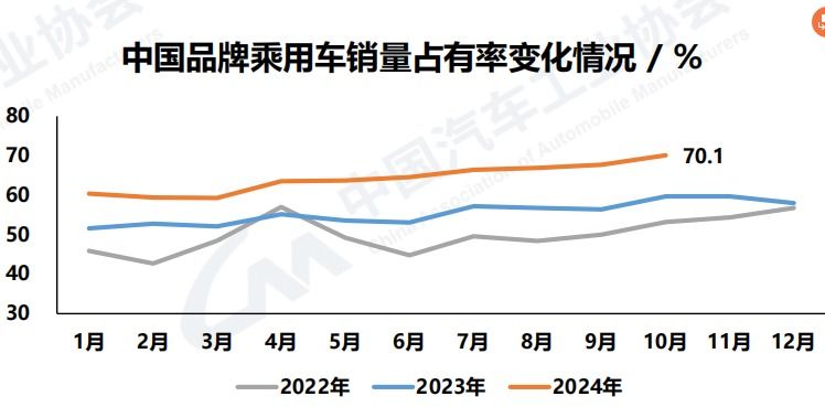 11月11日,中汽协发布的最新数据显示,1~10月,国内汽车产销分别完成2446.6万辆和2462.4万辆,同比分别增长1.9%和2.7%,汽车产量增速较1~9月收窄0.01个百分点,销量增速扩大0.36个百分点。 图片来源:中汽协 10月,国内汽车产销分别完成299.6万辆和305.3万辆,环比分别增长7.2%和8.7%,同比分别增长3.6%和7%。“进入10月,国家以旧换新政策对汽车消费拉动效应明显,多地车展与促销活动如火如荼,企业新车型密集投放,推动车市热度持续走高,10月汽车销量环比、同比均实现增长。”中国汽车工业协会副秘书长陈士华解释称。 中汽协方面表示,伴随政策累积效应持续显现,叠加车企及经销商年底冲刺,有助于汽车消费需求持续释放,预计后两个月车市仍将保持向上走势。“鉴于以旧换新政策加码以后提振效果显著,建议明年延续相关政策,并尽早发布实施细则,扩大政策宣传。”陈士华称。 10月乘用车销量同比增10.7%,购车需求持续释放 在多项积极因素推动下,国内乘用车市场持续向好。10月,我国乘用车产销分别完成270.6万辆和275.5万辆,环比分别增长8.2%和9.1%,同比分别增长7.7%和10.7%。“10月,国家以旧换新政策效果持续显现,加之多地车展和促销活动火热开展,企业新品密集上市,助力乘用车市场持续向好,购车需求持续释放。”陈士华表示。 细分来看,10月,乘用车国内销量为228.9万辆,环比、同比均增长10.7%;乘用车出口46.5万辆,环比增长1.8%,同比增长10.7%。 1~10月,我国乘用车产销分别完成2134.9万辆和2143.4万辆,同比分别增长3%和3.7%。其中,乘用车国内累计销售1733.4万辆,同比下降0.1%;乘用车累计出口410万辆,同比增长24%。 图片来源:中汽协 在10月乘用车市场中,中国品牌乘用车销量占比进一步提升,达到了70.1%,较上年同期上升10.4个百分点。10月,中国品牌乘用车共销售193.1万辆,同比增长30%。在主要外国品牌中,与上月相比,德系品牌和日系品牌销量小幅增长,其他三大主要品牌销量均呈不同程度下降;与上年同期相比,除法系品牌销量两位数增长外,其他四大主要品牌销量均呈不同程度下降。 1~10月,中国品牌乘用车共销售1384.9万辆,同比增长21.2%,占乘用车销售总量的64.6%,较上年同期上升9.3个百分点。在主要外国品牌中,与上年同期相比,除韩系品牌销量小幅增长外,其他四大主要品牌销量均呈两位数下降。 相对乘用车市场的持续向好,10月的商用车市场表现却相对疲弱。中汽协数据显示,10月,商用车产销分别完成29万辆和29.8万辆,产量环比下降1.5%,销量环比增长5%,同比分别下降23.3%和18.3%。在商用车主要品种中,与上月相比,客车和货车产量均呈小幅下降,销量均呈小幅增长;与上年同期相比,客车产量下降、销量增长,货车产销均呈两位数下降。 1~10月,商用车产销累计完成311.7万辆和319万辆,同比分别下降5.1%和3.4%。在商用车主要品种中,与上年同期相比,客车产销呈小幅增长,货车产销呈小幅下降。 全年出口量有望接近600万辆 10月,我国新能源汽车继续保持高增长态势,月度产销再创历史新高。 中汽协数据显示,10月,我国新能源汽车产销分别完成146.3万辆和143万辆,同比分别增长48%和49.6%,新能源汽车新车销量占汽车新车总销量的46.8%。其中,新能源汽车国内销量130.2万辆,同比增长56.5%,占汽车国内销量比例为51.8%。这也是新能源汽车国内销量占比连续第三个月超50%。 1~10月,我国新能源汽车产销分别完成977.9万辆和975万辆,同比分别增长33%和33.9%,新能源汽车新车销量达到汽车新车总销量的39.6%。其中,新能源汽车国内累计销售869.2万辆,同比增长38.3%,占汽车国内销量比例为44%。 图片来源:中汽协 2024年前10个月,中国新能源汽车销量排名前十位的企业集团销量合计为834.8万辆,同比增长33.8%,占新能源汽车销售总量的85.6%。 与新能源汽车一样,10月我国汽车出口继续保持较快增长。10月,中国汽车出口54.2万辆,环比增长0.5%,同比增长11.1%。其中,10月传统燃油车出口41.4万辆,环比下降3.5%,同比增长13.6%;新能源汽车出口12.8万辆,环比增长16%,同比增长3.6%。 1~10月,中国汽车出口485.5万辆,同比增长23.8%。其中,传统燃油车出口379.8万辆,同比增长29.7%;新能源汽车出口105.8万辆,同比增长6.3%。 细分来看,插电式混合动力汽车出口增速已远超纯电动汽车。数据显示,1~10月,我国纯电动汽车出口83.6万辆,同比下降9.2%;插电式混合动力汽车出口22.2万辆,同比增长2倍。其中,10月,纯电动汽车出口10.4万辆,环比增长17.3%,同比下降9.2%;插电式混合动力汽车出口2.4万辆,环比增长10.7%,同比增长1.6倍。 从中汽协发布的2024年1~10月整车出口量前十位企业增速来看,比亚迪出口33.2万辆,同比增长79.6%,位居第一位。紧随其后的是北汽和长安汽车,分别出口21.8万辆、46.7万辆,同比分别增长63.2%和60.5%。 而在10月整车出口前十企业中,奇瑞汽车则以11.2万辆的出口量拿下第一,同比增长18.9%,占总出口量的20.7%。但与上年同期相比,北汽出口增速最为显著,10月出口量为3万辆,同比增长1倍。 日前,上汽国际党委书记、副总经理赵爱民在接受《每日经济新闻》记者采访时表示,随着国内汽车工业的发展,越来越多的自主品牌开始出海,走向全球市场,预计今年全年中国汽车出口规模将达600万辆。 陈士华也表示,在接下来两个月,如果我国汽车出口保持当前增长态势,全年出口量将有望接近600万辆。 每日经济新闻 (责任编辑:王治强 HF013)