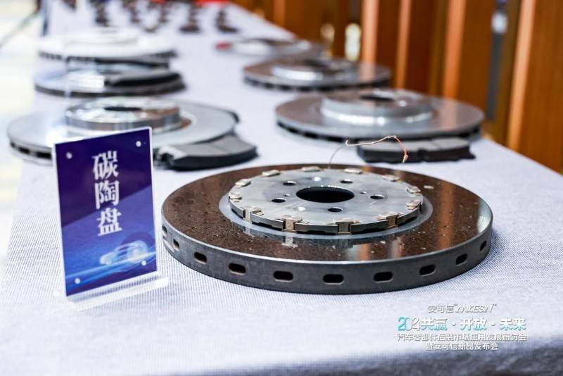 高性能与轻量化刹车片齐亮相 此次发布会上,安可信重点展示和发布了旗下高性能Hybird制动片、高端碳陶制动片、轻量化铝基陶瓷材料盘/片等。 高性能Hybird制动片由安可信最早在2017年完成开发,并广泛应用于前装量产。此款高性能刹车片完美平衡了低金属制动片与日系陶瓷制动片的制动力与舒适性。综合前装量产的应用情况,高性能Hybird制动片具有摩擦系数高、使用寿命长、运行噪音低、不抖动、不伤制动盘、防生锈、防落灰等显著优势。