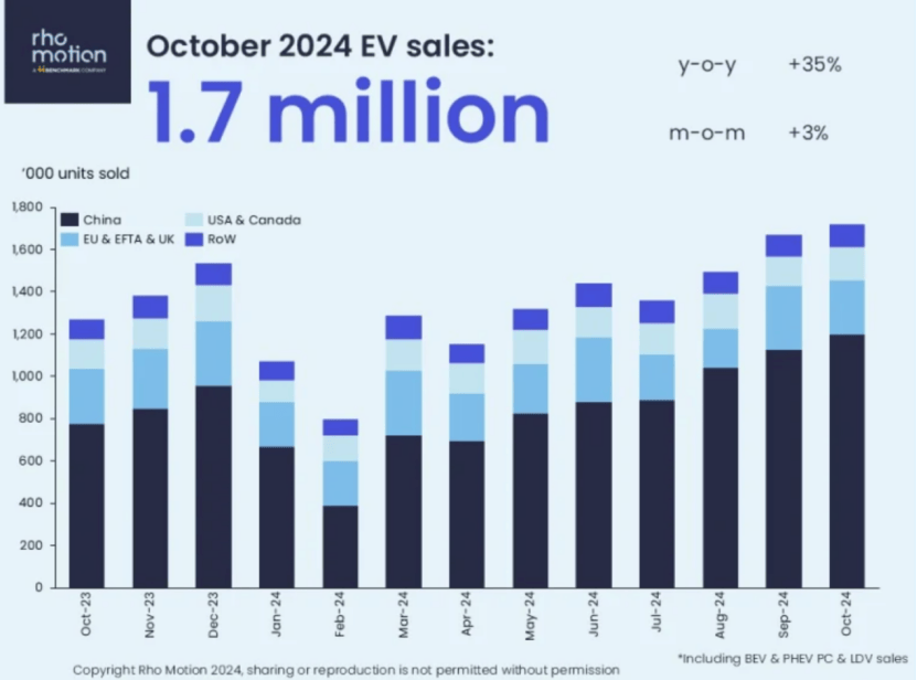 中国电动汽车果然卖爆了。 当地时间11月13日,市场研究公司Rho Motion最新发布的报告显示,全球10月份电动汽车(包括纯电动和插电式混动汽车)的销量同比增长35%,其中中国地区销量大幅飙升54%,创下历史新高,带动了所有地区的销量增长。 该机构指出,全球电动汽车市场现在再次回暖,连续第二个月创下销售纪录,每年11月、12月份往往是中国电动汽车市场销售的季节性旺季,预计中国电动汽车市场销量仍将保持强劲势头。 值得注意的是,当前新能源赛道的大消息愈发密集。昨日午后,A股的储能概念股全线飙升,截至收盘,永福股份(300712)斩获20%涨停板,传艺科技(002866)、三变科技(002112)录得10%涨停。消息面上,昨日宁德时代(300750)创始人兼董事长曾毓群在接受采访时表示,宁德时代的目标是将自己重塑为绿色能源供应商,预计开发和管理“零碳”电网的业务可能比供应电动汽车电池大“十倍”。 飙升54% 当地时间11月13日,市场研究公司Rho Motion最新发布的报告显示,今年10月,全球电动汽车(包括纯电动和插电式混动汽车)的销量同比增长35%,达到172万辆。 报告指出,中国市场10月份的电动汽车销量达到120万辆,同比大幅飙升54%,创下历史新高,带动了所有地区的销量增长。 Rho Motion表示:“随着中国汽车销售进入今年最后两个月份,中国电动汽车市场没有显示出放缓的迹象。” Rho Motion数据经理查尔斯・莱斯特(Charles Lester)表示,全球电动汽车市场现在再次回暖,连续第二个月创下销售纪录,大部分增长来自中国市场。 他进一步补充称,每年11月、12月份往往是中国市场电动汽车销售的季节性旺季。 另外,报告显示,在美国和加拿大,10月份的电动汽车销量同比增长11.4%,达到16万辆。 对此之下,欧洲市场则相对疲软,该地区10月份的电动汽车销量为26万辆,同比略有上升,但环比9月份下降了14%;在全球其他地区,电动汽车销量同比增长了10.9%。 查尔斯・莱斯特透露,尽管欧洲销量仅同比增长0.8%,但已经连续第二个月实现同比正增长。因此,该公司预计欧洲地区今年全年销量有望以良好的成绩收官。 Rho Motion的声明指出,欧洲电动汽车制造商或减价,以提高销量达到欧盟为明年设定的碳减排目标,避免罚款。 当前,欧洲汽车行业正面临着诸多挑战,包括生产成本高昂、向电动汽车转型困难,以及来自中国车企的激烈竞争。 今年10月,欧洲最大的汽车制造商大众汽车已经表示,计划关闭在德国的至少三家工厂,裁撤数以万计员工,并且打算全员降薪10%,收缩其在德国所有剩余工厂规模。 分析认为,包括大众和奔驰在内的德国汽车制造商,已在电动汽车转型方面落后于特斯拉和中国公司,并在关键的亚洲市场输给了许多有创新优势的中国新兴企业。德国汽车工业协会分析称,德国的劳动力成本是欧洲最高的。大众乘用车部门负责人Thomas Sch?fer表示,德国的一些大众工厂的成本是竞争对手的两倍。 一则消息引爆 值得注意的是,当前新能源赛道的大消息愈发密集。 昨日午后,A股的储能概念股全线飙升,截至收盘,永福股份斩获20%涨停板,华自科技(300490)大涨15%,传艺科技、三变科技录得10%涨停,绿能慧充、安靠智电(300617)、星云股份(300648)、湘电股份(600416)、宁德时代等个股跟涨。 消息面上,宁德时代创始人兼董事长曾毓群在接受采访时表示,宁德时代的目标是将自己重塑为绿色能源供应商,并大幅削减开发电动汽车的成本,从而颠覆推动其增长的汽车行业经济模式。 曾毓群指出,预计开发和管理“零碳”电网的业务可能比供应电动汽车电池大“十倍”。宁德时代的目标是打造大型独立能源系统,足够为一个大型数据中心甚至一座城市供电。 据宁德时代的三季报显示,今年前三季度,宁德时代储能产量为76.6GWh,同比增长34%,市占率达35%,保持全球第一。 中信证券分析,固态电池技术的快速发展正在为储能板块注入新的活力。随着无隔膜固态锂电池技术的突破,行业内企业如宁德时代等纷纷加大研发投入,这不仅是技术上的突破,更是新能源行业产业升级的重要推动力。 对于未来储能赛道的发展,中信证券(600030)认为,市场对储能技术的需求将持续增长,企业在技术创新和应用拓展上的竞争将愈发激烈。 从行业政策及基本面展望来看,储能技术的应用场景逐渐多样化,尤其是在可再生能源整合、发电侧、输配电侧以及用户侧的应用。而宁德时代等公司在储能系统的技术创新和安全性提升方面不遗余力,进一步增强了市场对储能行业未来发展的信心。 政策层面,“发展新型储能”在今年被首次写入政府工作报告之后,从中央到地方都在加快新型储能产业布局和发展,这将为行业发展提供强有力的支撑。 国家能源局数据显示,截至2024年9月底,全国已建成投运新型储能5852万千瓦/1.28亿千瓦时,较2023年底增长约86%。 11月7日,在2024世界储能大会开幕式上,全国政协十三届经济委员会副主任、国家智能制造专家委员会主任苏波在致辞中指出,到2025年,我国新型储能累计装机将达到100GW,行业总产值将超过万亿元。到2030年,新型储能累计装机将达到220GW,行业总产值将超过3万亿元。 校对:姚远 (责任编辑:董萍萍 )