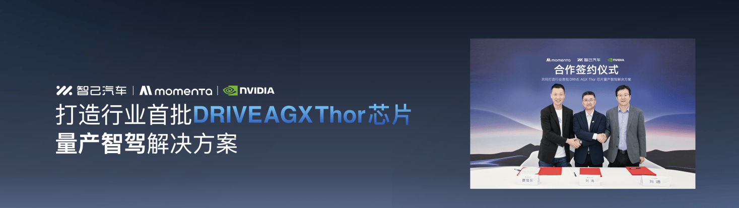 2024年11月15日,广州―― 智己汽车、NVIDIA 英伟达与Momenta三方合作,打造行业首批DRIVE AGX Thor芯片量产智驾解决方案,加速IM AD领先产品体验。据悉,该方案也将于2025年率先搭载于智己汽车量产车型。智己汽车联席CEO刘涛,NVIDIA全球副总裁刘通,以及Momenta CEO 曹旭东共同出席了签约仪式。 从“更像人”,到“成为人”的直觉智驾体验 基于DRIVE AGX Thor 芯片的算力优势,Momenta一段式智驾大模型能够支持更高分辨率、更长历史的图片及视频输入。更高分辨率的信息输入使得IM AD 3.0 可以看得更远、更清楚;更长时序的信息让系统对环境理解和综合决策更深刻。进而让IM AD 3.0的智驾体验从“更像人”,到“成为人”,甚至“超越人”。 反应速度更快,提升安全重在毫厘间 基于DRIVE AGX Thor 智驾芯片的高性能计算,Momenta一段式智驾大模型的整体反应速度更快,带来乃至数百毫秒的提升。IM AD 3.0也因此为用户带来更安全,安心的产品体验。 上限更高,进化速度更快 DRIVE AGX Thor 芯片具有更高性能上限,而Momenta智驾大模型具有高适配性的特点,可高效适配全级别芯片平台。强强联合下,IM AD 3.0可以充分发挥智驾大模型和芯片的关键优势,为用户提供行泊一体Door to door全场景、最连续的智驾体验。 此次发布的量产智驾解决方案,不仅涵盖ADAS全功能,也支持HNP高速高架领航辅助、UNP城市领航辅助、LPNP记忆泊车领航辅助等高阶智驾功能。 智己汽车联席CEO刘涛表示:“智己汽车致力于推动新能源汽车产业的智能化发展,此次共同打造的行业首批DRIVE AGX Thor芯片量产智驾解决方案,也将于2025年率先搭载于智己汽车量产车型,服务更多消费者。” NVIDIA英伟达全球副总裁刘通表示:“很高兴看到 NVIDIA DRIVE AGX Thor 下一代智驾平台在落地量产方向上迈出了重要一步,相信随着合作的达成与落实,科技的进步也将真正惠及更多人。” Momenta CEO 曹旭东表示:“基于Momenta智驾大模型打造的行业首批DRIVE AGX Thor芯片量产智驾解决方案,使得IM AD 系统性能上限更高,算法“飞轮式”进化迭代速度更快,终端产品生命周期也更长。进而加速推进高阶智能驾驶技术的规模化、商业化落地,让更多用户享受智驾带来的安全性和便利性。 未来,上汽智己、NVIDIA与Momenta将继续深化合作,加速高阶智能驾驶技术在更多量产车型的落地,赋能更安全、更轻松、更高效的智能出行。 (责任编辑:刘畅 )