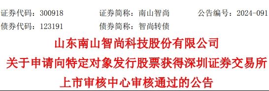 中国经济网北京11月18日讯南山智尚昨晚公告称,公司于2024年11月16日收到深交所上市审核中心出具的《关于山东南山智尚科技股份有限公司申请向特定对象发行股票的审核中心意见告知函》,深交所发行上市审核机构对公司 ...