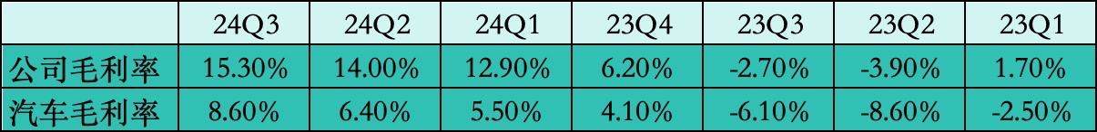 随着小鹏MONA M03和小鹏P7+等爆款产品上市,小鹏汽车的翻身仗打响了。 11月19日晚,小鹏汽车发布2024年三季度业绩报告。在今年三季度,小鹏汽车营收达101亿元,同比增长18.4%,环比增长24.5%;三季度汽车总交付量为46533辆,同比增长16.3%,均超出此前预期。 三季度小鹏汽车的自我造血能力大幅提升,其毛利率达到15.3%,同比提升18个百分点,并连续5个季度实现增长。这一数字在行业内处于领先位置,并超过多家新势力品牌同期毛利率表现,同时也意味着小鹏汽车走上了健康发展之路。 在三季度交出史上最强财报后,小鹏汽车董事长、CEO何小鹏表示:“我们的体系能力在变革后全面提高。小鹏MONA M03和小鹏P7+的成功上市标志着我们大产品周期的增长正循环已经开启”。 基于此,小鹏汽车对今年四季度的汽车交付量和营收表现给出了乐观的预期:预计四季度交付量达8.7万-9.1万辆,同比增加约44.6%-51.3%;总营收预期达153亿-162亿元,同比增长17.2%-24.1%。 从更长远来看,何小鹏认为2025-2027年会是中国汽车行业的淘汰赛阶段。一方面中国新能源渗透率会提升至85%甚至以上,另一方面AI的变革将会驱动整个市场份额走向下一个阶段的再次整合。而在AI技术的加持下,小鹏汽车有望于明年四季度,正式走向盈利。 增收又增利,小鹏迎来爆发 经过大刀阔斧式的变革和降本提效,小鹏汽车的造血能力正在不断增强。 今年三季度,小鹏汽车总营收为101.0亿元(约合14.4亿美元),较2023年三季度的85.3亿元营收增长18.4%,较2024年二季度的81.1亿元营收增长24.5%。 (小鹏汽车季度毛利率变化 数据来源企业) 同时得益于技术降本全面兑现和规模的环比大幅增长,三季度毛利率则达15.3%,同比提升18个百分点,并连续5个季度实现增长。 与多家新势力品牌相比,小鹏汽车的毛利率已处于领先位置,这意味着小鹏汽车拥有更强的自我造血能力和更为乐观的盈利前景。小鹏汽车方面也预计,明年四季度有望迎来盈利时机。 小鹏汽车在组织效率方面降本,但在技术上却加大投入,为小鹏汽车产品起飞做足准备。今年三季度小鹏汽车的研发费用达16.3亿元,较2023年第三季度的13.1亿元增长25.1%,较2024年第二季度的14.7亿元增长11.3%。 大力投入研发的直接结果是,小鹏汽车的产品力不断提升。今年小鹏汽车已实现月销量8连涨,10月其交付量更是达到23917辆,创下历史新高。 汽车销量的增长离不开服务网络的拓展。 截至2024年9月30日,小鹏汽车的实体销售网络涵盖639家门店,覆盖206座城市。小鹏自营充电站网络达到1557个充电站,其中包括654个小鹏S4超快充电站以及6座液冷S5超快充电站。这意味着消费者能在全国各地,享受更全面、优质和贴心的用车体验。 在国内热销的同时,小鹏汽车在海外市场也取得了长足进步。 小鹏汽车近年来深入布局海外销售网络、拓展海外产品矩阵,也迎来了阶段性“丰收”。今年三季度,小鹏汽车海外销量再攀新高,整体环比增长70%,占比达公司总销量15%。 小鹏汽车还在三季度正式进入新加坡、西班牙、葡萄牙等新市场,海外销售网络拓展至30多个国家,拥有超110家门店。当下小鹏汽车已位列中国品牌高端纯电车型出口销量榜首位,小鹏G9在北欧中大型纯电SUV销量榜上排名第一。 国内、国外齐开花,小鹏汽车开始快步走向健康发展之路。何小鹏表示,将以小鹏P7+为新一代车型毛利率改善的全新起点,在明后年的全新车型和重要改款车型中将会搭载小鹏P7+首发的一系列平台化技术,新一代车型的稳态毛利率有望达到双位数水平。 技术加持,爆款登场 经营业绩大幅改善并非易事。过去两年来,小鹏汽车在战略、产品、管理、组织等多方面都执行了全面变革,才得以应对更加残酷的市场竞争。 如在行业价格战和部分企业大举裁员之际,小鹏汽车却坚定技术研发投入和优秀人才的招募,还补足了营销、渠道、设计等方面的短板,使得公司的体系化能力更为强大,在接下来厮杀激烈的市场环境中,充满底气和实力。 小鹏汽车对于AI技术的坚定投入已经开始转化为产品体验和成本优势。今年三季度以来,小鹏汽车先后推出小鹏MONA M03和小鹏P7+两款全新车型,以过硬的产品力和极具诚意的“智价比”引爆市场,为小鹏汽车打开了“技术领先+超级爆品”的新增长模式。 小鹏MONA M03在8月27日正式上市,凭借全面对标20万元级车型的智能化配置,在体量最大、竞争最激烈的A级轿车市场中强势突围,成为众多年轻用户的首选车型。上市以来,小鹏MONA M03已连续两个月交付突破万辆,成为细分市场中的爆款产品。 为了巩固并加强竞争优势,小鹏汽车又在11月7日推出了“全球首款AI汽车”小鹏P7+,与小鹏MONA M03形成产品组合拳。小鹏P7+定位中大型纯电轿跑,售价18.68万元起。 值得一提的是,小鹏汽车是首个推动智驾平权、将高阶智驾标配到所有版本车型上的车企。小鹏P7+全系首发搭载小鹏自研的AI天玑5.4.0、端到端大模型以及AI鹰眼智驾方案,智驾能力领跑行业。 领先的智能化技术搭配极具诚意的售价,使得小鹏P7+再成爆款。官方数据显示,上市仅12分钟,小鹏P7+大定便超过1万,3小时内,大定突破了3万个,大定数据刷新了小鹏汽车所有历史最佳纪录。值得一提的是,全系标配高阶智驾是用户选择P7+的核心原因。 为了让更多用户能够使用高阶智驾,小鹏汽车还在进一步降低其门槛:即将上市的小鹏MONA M03 Max版也将搭载AI鹰眼智驾方案。这意味着