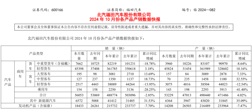 营收净利双降,汽车销量逆势下滑,股价十年来一直稳定在2-3元/股的低位,福田汽车为何一直得不到市场的认可。据福田汽车近日发布的10月份产销快报,2024年10月汽车总销量5.61万辆,同比增长5.62%;2024年1―10月累计 ...