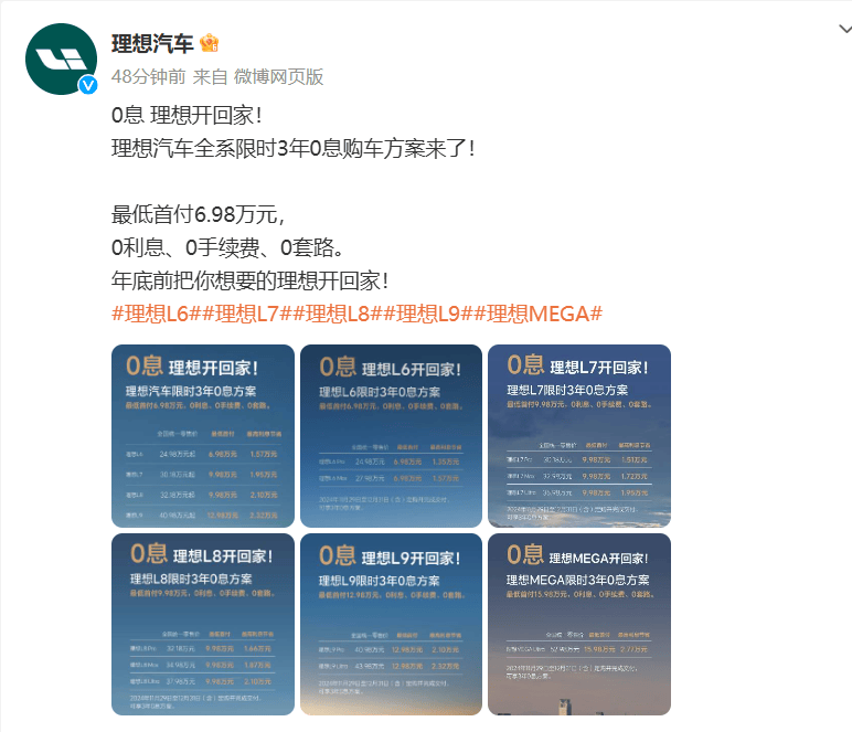 每经AI快讯,11月29日,据理想汽车官方微博消息,理想汽车对在12月31日前完成定购、交付的用户,推出了“3年0息”的购车政策――0利息、0手续费。每日经济新闻 ...