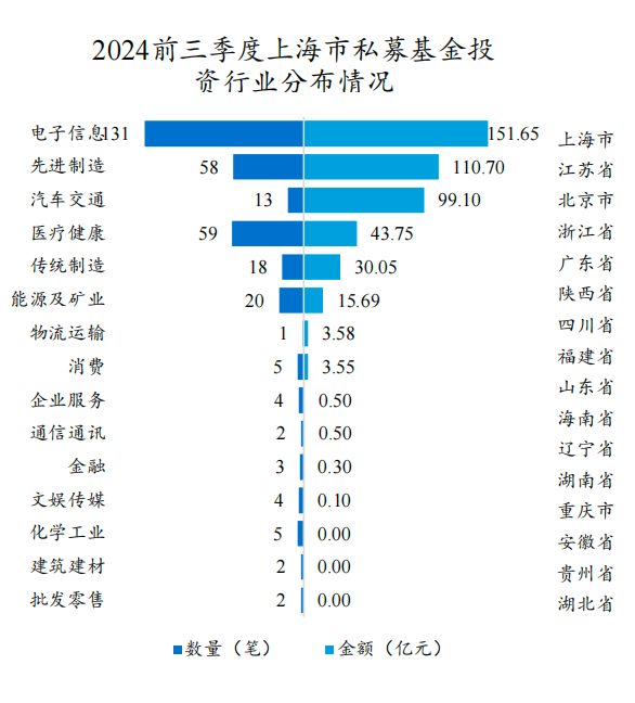 每经记者 陈婷 每经编辑 董兴生 2024年前三季度,上海地区的PE/VC(私募股权/风险投资)市场发展情况如何? 12月10日,在第十七届外滩金融•上海国际股权投资论坛上,《2024年上海市私募股权创投行业发展报告》(以下简称“报告”)正式发布。报告显示,2024年前三季度,上海市私募股权创投行业投资327笔,投资总额459.47亿元,分别同比减少47%、50%。所有轮次的融资活动都有所减少,尤其是A+轮、B轮、D轮和定向增发等轮次下降最为明显。 报告还显示,2024年前三季度,上海市LP(Limited Partner,有限合伙人)认缴出资额共计约670亿元,同比增长15.61%;出资LP共计301家,同比下降50.25%。 在解读报告时,上海市国际股权投资基金协会副理事长兼秘书长、领中资本管理合伙人黄岩表示,从募资角度来说,募资额同比增长,但LP出资数量、出资基金数量有所下降,国资成为绝对主力。 值得一提的是,在谈及最新变化时,黄岩提到,在去年调研500多家企业诉求时发现,企业的第一诉求是融资,第二诉求是出海。“我们国家的科创企业,有非常多的产业成本优势、技术优势,在全球市场都可以有一定的性比价优势以及出海优势,我们的出海体系很完善,很多创投企业跟投资企业一起走向全球。” “不出海,就出局”,在全球化背景下,这一理念成为越来越多中国企业的共识。 投资风口集中在战略新兴领域报告提及,2024年前三季度,从投资数量来看,上海私募股权投资基金所投资的领域主要集中在电子信息、医疗健康和先进制造行业,分别为131笔、59笔、58笔;投资区域方面,集中在上海、江苏、北京、浙江、广东等地。全国区域私募股权基金投资上海集中在汽车交通、先进制造、电子信息、医疗健康领域,投资区域中,浦东新区以177笔、197.85亿元的投资金额领先。 图片来源:报告截图 此外,在退出情况方面,报告显示,2024年前三季度,上海私募股权创投基金退出项目总数达到202个,比2023年同期的206个略有下降,通过并购方式实现退出的项目数量却在上升。2024年前三季度,与2023年同期相比,各行业IPO退出数量均呈现下降态势,电子信息行业以12笔退出排名第一。 针对行业趋势,黄岩提到,投资风口非常集中在战略新兴领域,这个领域要求投资人有前瞻性眼光,并且学习很多新知识。 “像可控核聚变,商场化预判要30年,为什么现在还有一些资本去投资它?首先要去了解它的未来前景,它的可能性,门槛有多高,了解之后可以做很好的布局。”黄岩表示,从国家到地方,都公布了对新兴产业、未来产业、先导产业的布局,“投资人(可以)根据这些内容在这些领域寻找好的创业项目”。 值得一提的是,黄岩发现,跟投资互联网时代、大消费时代完全不一样的是,原来投一个好项目,“自己发展得好就上市了”,投资人比较难在这个过程中发挥非常好的作用。但现在投资科技项目不一样,从0到1,从面向市场开始就会面临各种各样的问题。 “对科技创始人来说,让他成为管理、销售、市场达人,太(有)挑战了。在这种情况下,更需要管理人,特别是国资管理人,更好地做赋能服务。”黄岩说。 事实上,当前的投资环境也给投资人提出了更高的要求。 金浦动力合伙人王晋便表示,当前,硬科技投资对管理人团队最重要的要求是专注赛道、持续深耕。他认为,管理人团队需要具备专业的认知、建立体系化的投资逻辑和形成产业生态圈。 “所谓专业的认知分两个维度,一是深度,二是广度。从广度层面把握细分行业的现状以及未来发展趋势,或者行业会不会有波动,作为管理人来说,要非常敏锐地觉察到变化。从深度来说,要觉察到整个产业链当中的核心环节,哪些是关键环节,哪些是卡脖子环节,像这些环节往往就是投资重点所在。”王晋说。 出海已是大势所趋敏锐的创投机构们,也注意到了中国企业的出海大势。 报告提及,在新一轮出海浪潮中,中国企业从单纯卖货逐步升级为输出技术、全球设厂和本地化深耕。创投机构精准筛选出海潜力企业,提供技术支持、资源对接与战略规划,共同打造国际化发展新格局。 黄岩在接受《每日经济新闻》记者采访时表示,中国企业出海的机遇源于其在研发、创新、产业化、供应链和成本控制等方面的显著优势,尤其是场景应用能力和落地先发优势,这使得中国科技创新型企业普遍具备国际化发展的基础条件。但国际化发展也考验企业的实施时机与模式选择,企业出海时是否拥有对国别环境、市场竞争格局、文化融合、品牌建设、资源配置及资本运作以及其他因素的有效协同和应对的能力,成为其国际化成功的关键所在。 他认为,对于那些已在国际市场建立基础的企业,也能利用其研发创新和产业链优势,与当地企业合作开发新产品和新技术,加速产能建设,支持和培育当地企业,帮助当地建立或完善产业基础设施,同时也能更好地应对不断变化的国际形势。 不少科技创新企业创始人对出海前景具备信心。 御风未来创始人兼首席执行官谢陵表示,“低空经济”是今年比较火的概念。提出“低空经济”作为经济类型的技术基础或者产业基础来源于三个,一个是无人机行业,经过十年左右,已验证为具备全球竞争力的产业;二是新能源汽车行业,形成技术先进、成本低廉的新能源汽车产业链;三是完成了两款国产大飞机的市场和商业化运行。 谢陵认为,传统航空器遵循的标准都是美国在过去上百年历史中积累