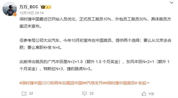 豪车品牌保时捷开始裁员,包括正式和外包岗位。受此影响,保时捷研发部门的成员也在寻找新的机会。销量数据公布显示,前三个季度全球销量下降7%,北美市场下降9%,中国市场暴跌29%。Panamera和Taycan的销售额下降幅 ...