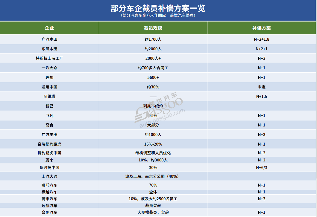 值得注意的是,上述车企的裁员尚能自己或有母公司“兜底”,被裁员工能及时拿到补偿。然而,爱驰、天际、高合等经营困境企业的员工却面临着被拖欠薪资和赔偿款的困境。极越汽车在破产事件持续发酵后,背后的吉利和百度两大股东才出面解决员工社保补缴和赔偿问题。 从裁员处理方式来看,外资和合资品牌表现出更高的规范性和社会责任感,通常会提前数月释放相关信息,给予员工充分的心理准备时间,同时提供较为优厚的赔偿方案。相比之下,国内车企多采用“N+1”的常规补偿标准,且裁员通知往往较为突然,“上午谈赔偿下午即走人”是常见操作。 研发岗:边裁边招 在这轮汽车行业大规模裁员中,研发部门成为关注焦点之一。 一份在网络流传的“汽车行业裁员现状”统计显示,研发中心往往是首当其冲的“重灾区”。虽然该消息尚未得到官方证实,但有观点认为,企业裁员降本“大刀”一般会先砍向研发部门。 以通用汽车为例,传出其在华智驾研发团队“清零”消息。同样引发关注的还有地平线,有员工在社交平台透露“软件产品线无了”,幸存员工被整合至其他部门。为何研发人员会成为裁员的“第一目标”?