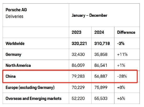 保时捷公布2024年全球交付数据,其中在中国市场的交付量为56887辆,同比下滑28%,而在其他主要销售区域,交付量有所增加或者稳定。为了在中国市场降本增效,保时捷无故取消了承诺的车主新年礼物,还取消了每年最为重 ...