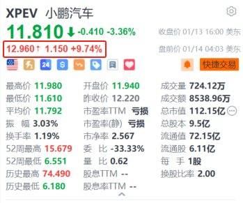 格隆汇1月14日|小鹏汽车(XPEV.US)盘前涨超9.7%,报12.96美元;H股今日收涨约8.5%,报50.6港元。消息面上,小鹏汽车公布,小鹏充电和bp pulse签署谅解备忘录(MOU),相互开放充电网络。双方将在部分内地核心经济圈城市打造试点项目,通过设备和场地协同,实现核心城市超快充网络的布局,为电车用户提供更具安全性及更可靠的充电服务体验。据悉,双方客户均可接入广泛分布在内地420个城市及逾30,000多枪的充电网络,联手打造核心城市圈最优质的充电网络之一。 (责任编辑:宋政 HN002)