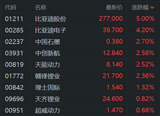 格隆汇1月20日|锂电池股拉升上涨,其中,比亚迪(002594)股份涨5%,比亚迪电子涨超4%,中航创新、天能动力、赣锋锂业(002460)涨超2%,天齐锂业(