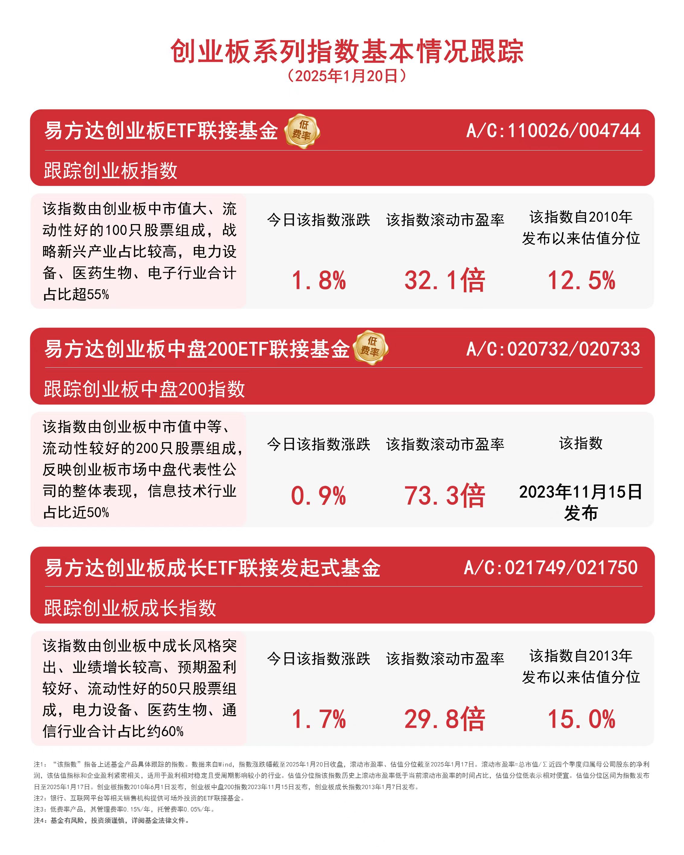 今日创业板走势强劲,创业板指数、创业板成长指数盘中一度涨超2%。截至收盘,创业板指数上涨1.8%,创业板成长指数上涨1.7%,创业板中盘200指数上涨0.9%。 ...